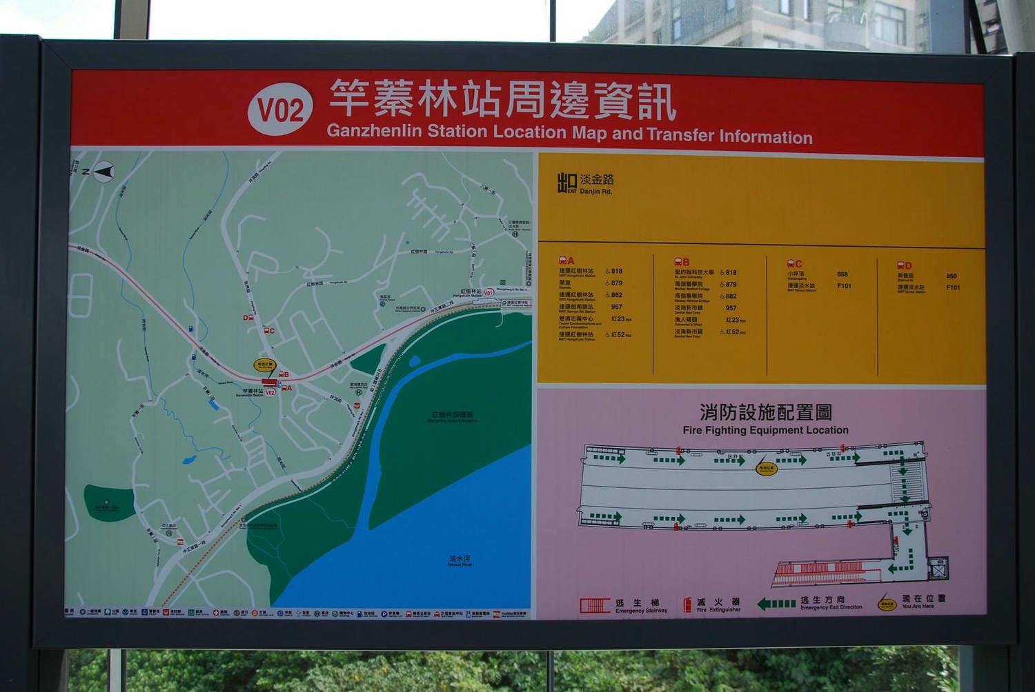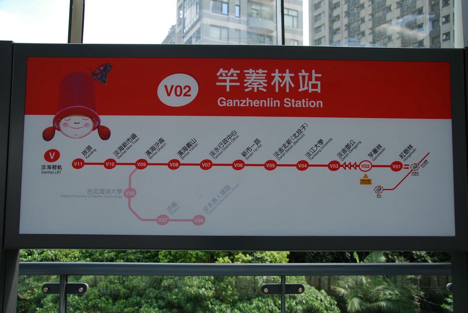 | 綠山線 | 紅樹林(V01)| 竿蓁林(V02)| 淡金鄧公(V03)| 淡江大學(V04)| 淡金北新(北投子)(V05)| 新市一路(V06)| 淡水行政中心(V07)| 濱海義山(V08)| 濱海沙崙(V09)| 淡海新市鎮(V10)| 崁頂(V11) |