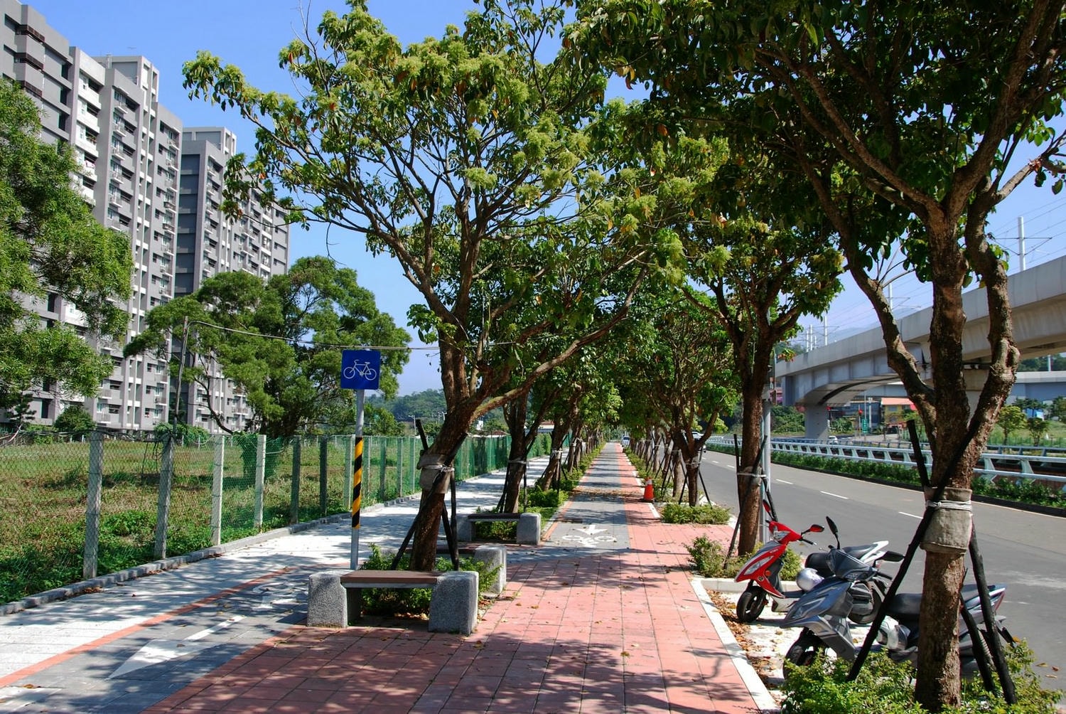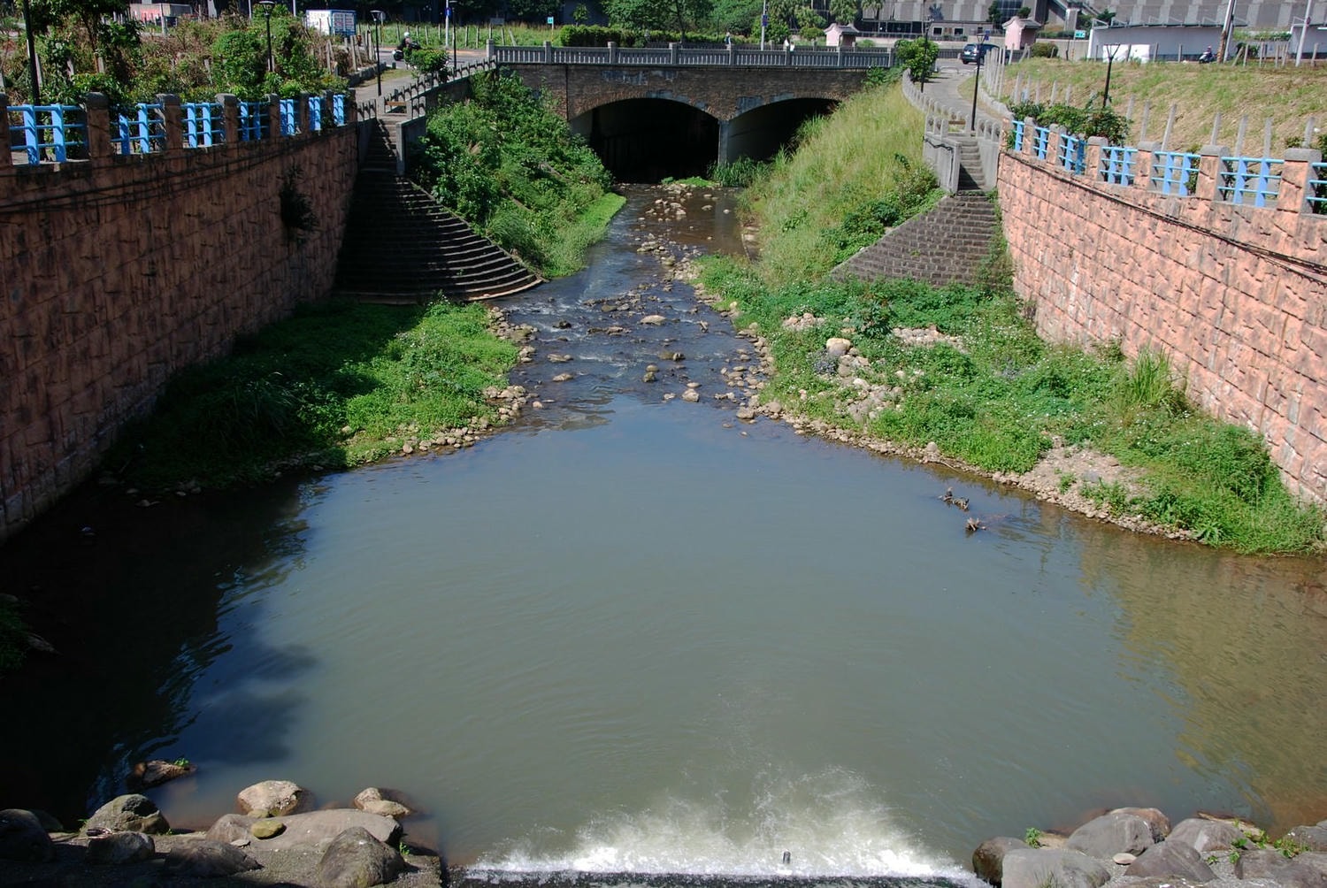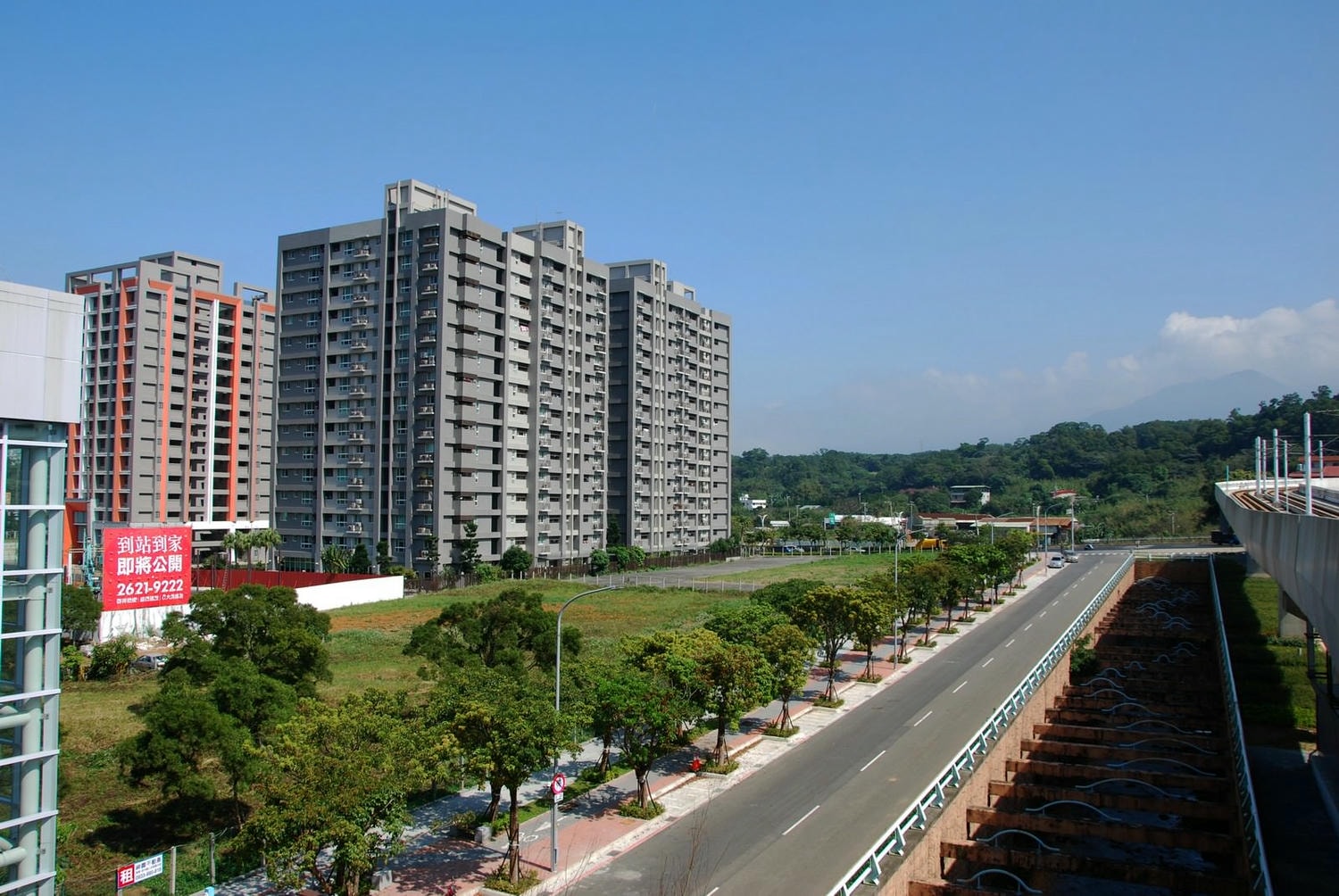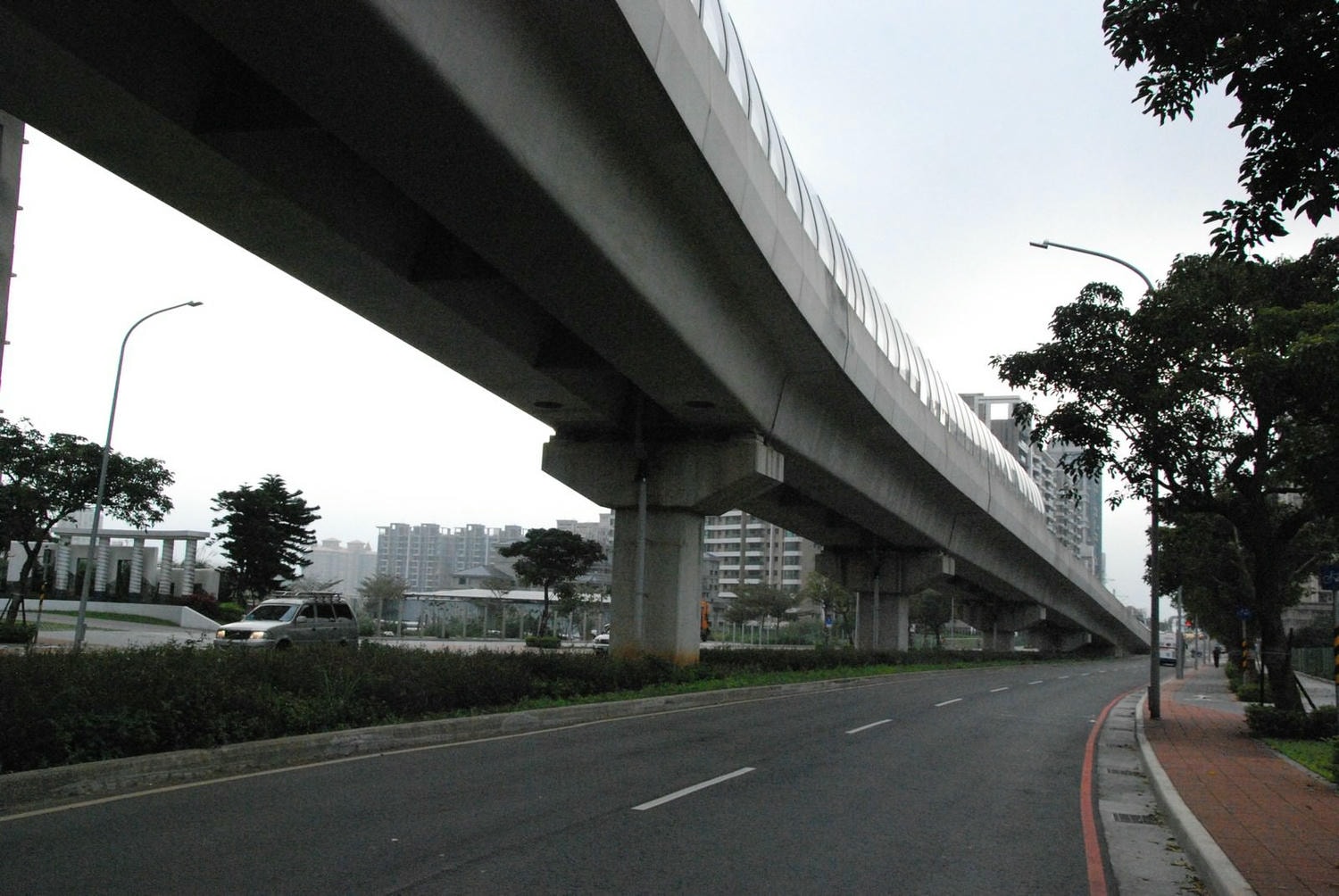 輕軌高架橋下有公司田溪(林子溪),與附近的環境。