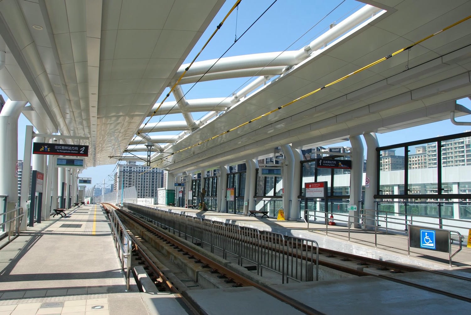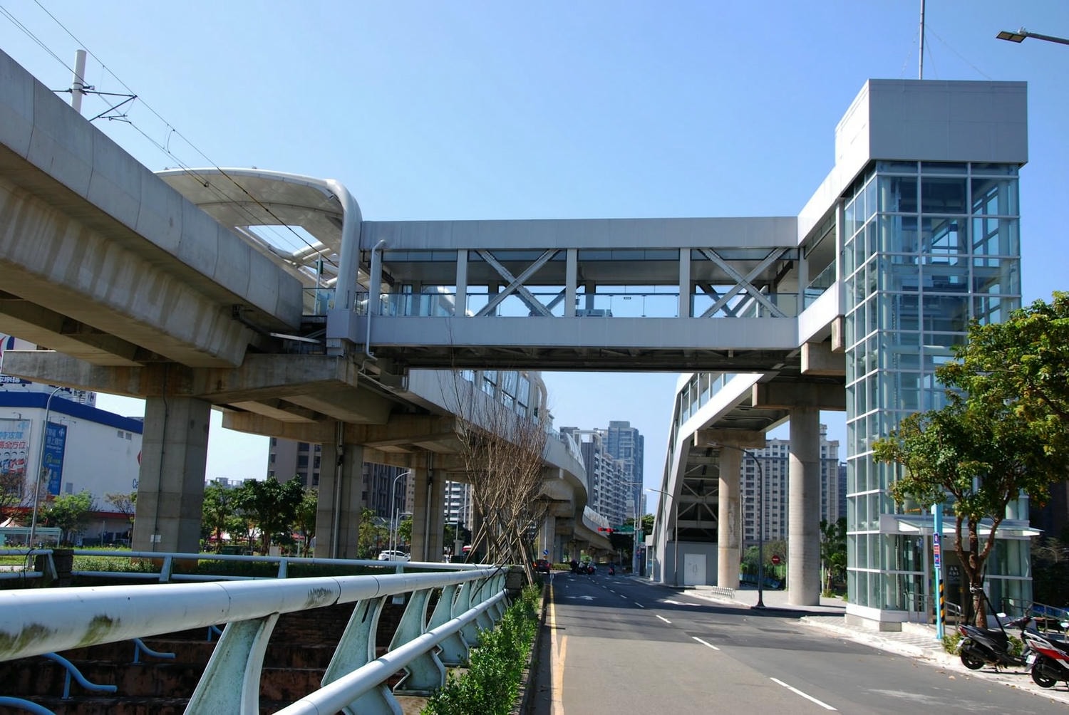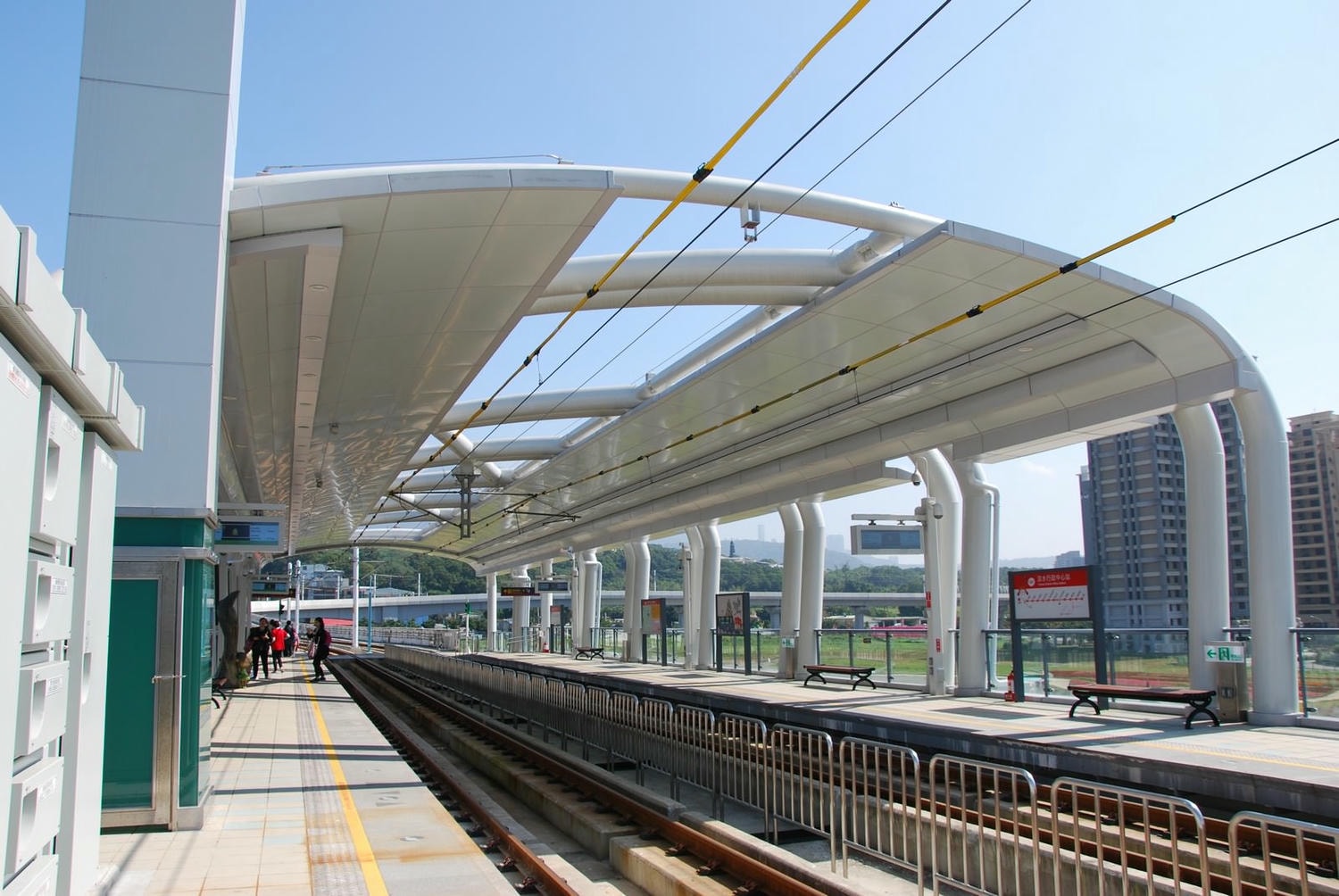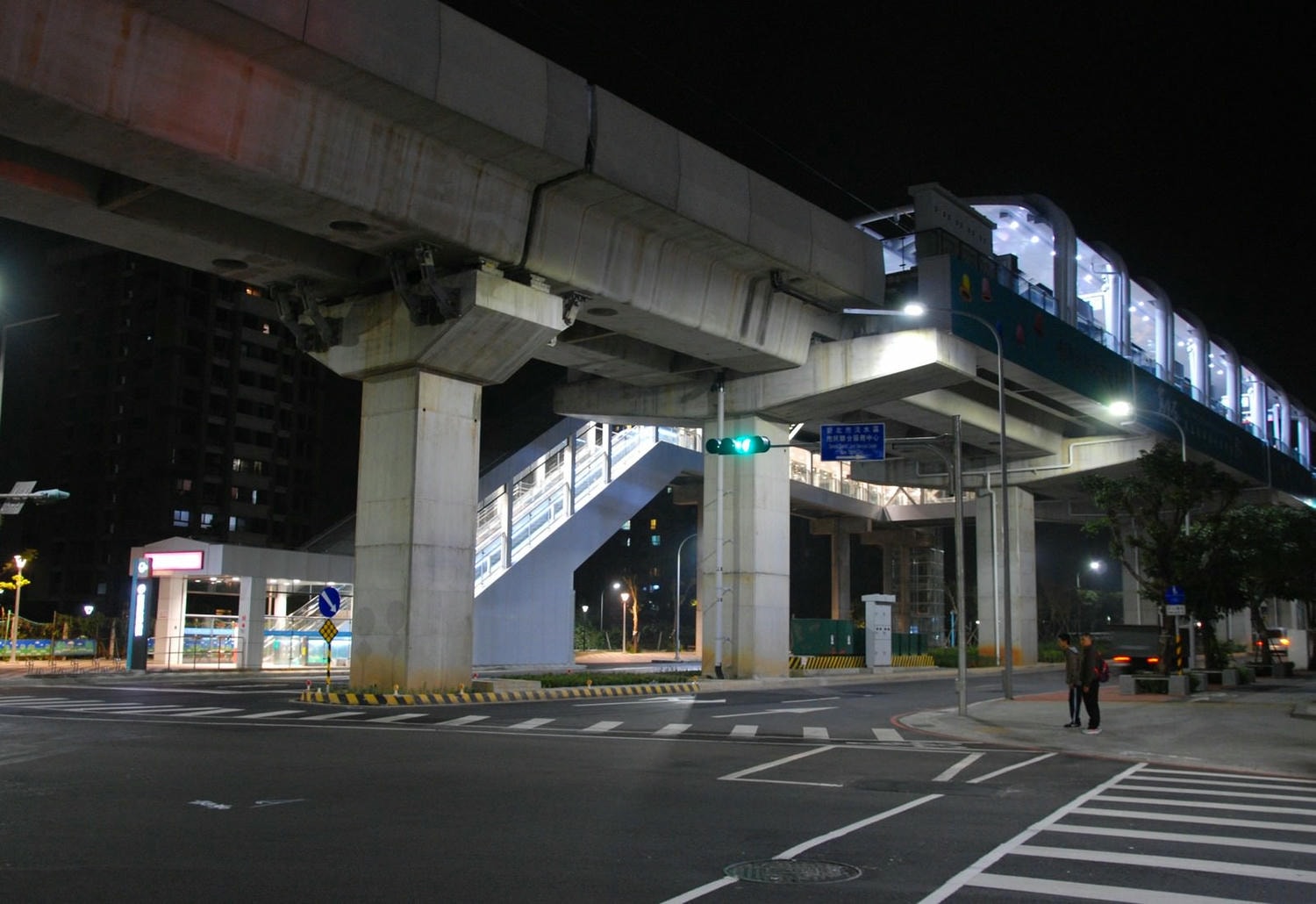 淡水行政中心站 是高架車站,濱海義山站 則是地面車站,中間會從高架逐漸駛入地面,進入地面後輕軌也要停紅綠燈。
