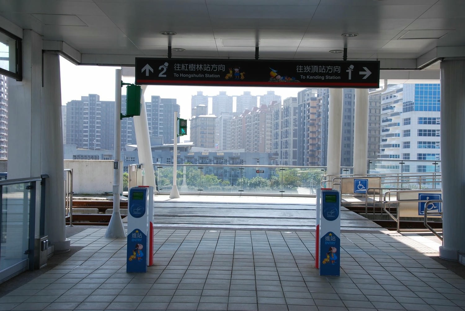 在月台上能看見旁邊空地公園,未來會規劃成幾米主題公園,從手扶梯下來出口後,左轉過馬路後就能看到,介紹:淡海輕軌幾米主題公園