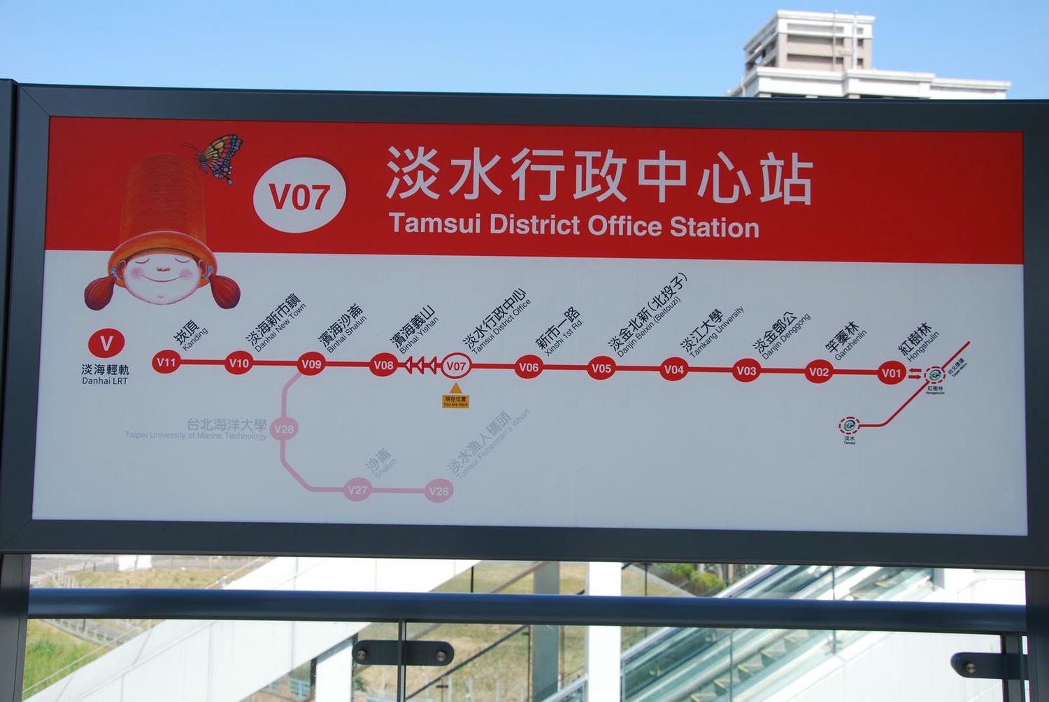 | 綠山線 | 紅樹林(V01)| 竿蓁林(V02)| 淡金鄧公(V03)| 淡江大學(V04)| 淡金北新(北投子)(V05)| 新市一路(V06)| 淡水行政中心(V07)| 濱海義山(V08)| 濱海沙崙(V09)| 淡海新市鎮(V10)| 崁頂(V11) |