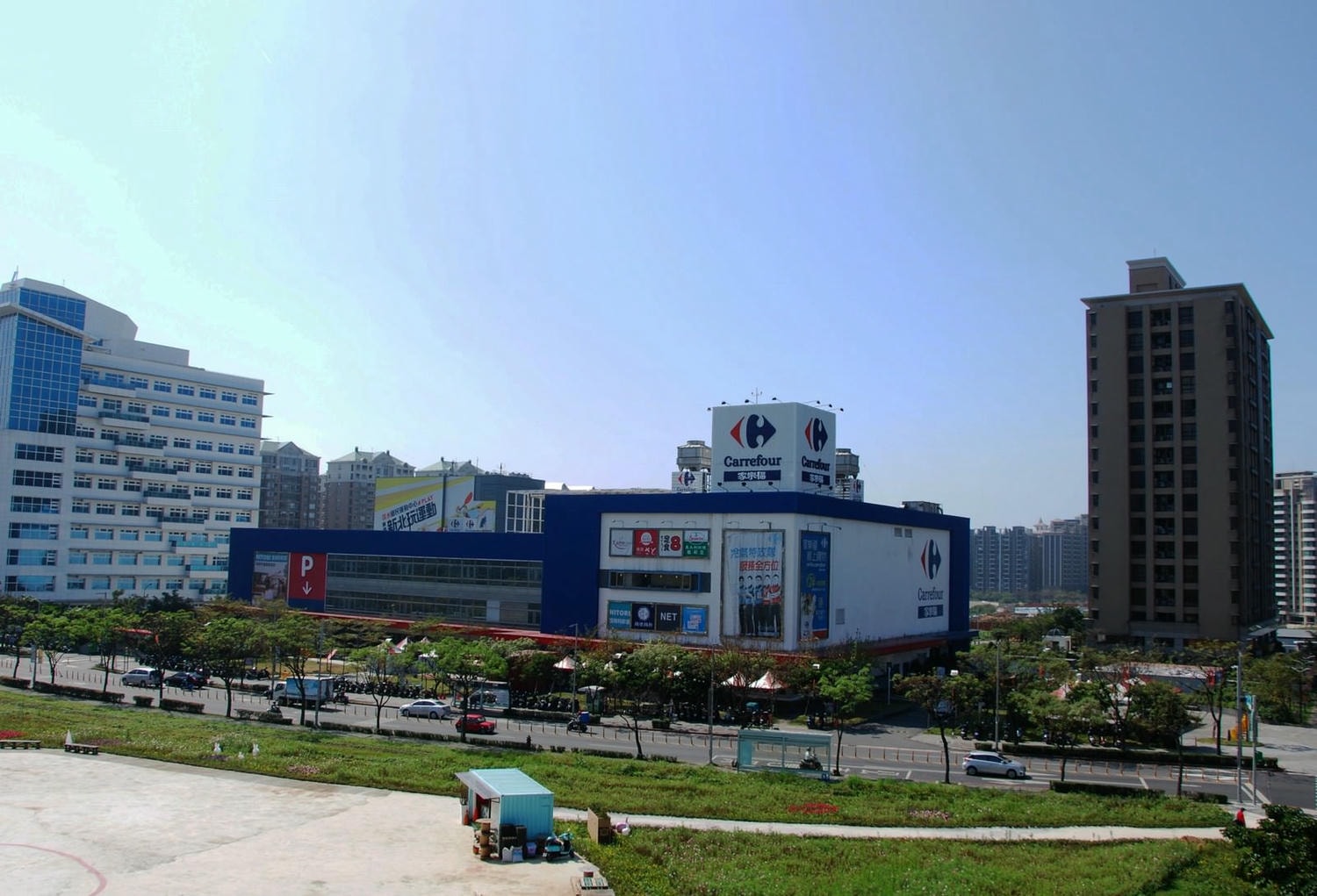 從手扶梯下來出口後,先直走過馬路(中山北路二段)再左轉過馬路(濱海路一段),就會到家樂福。