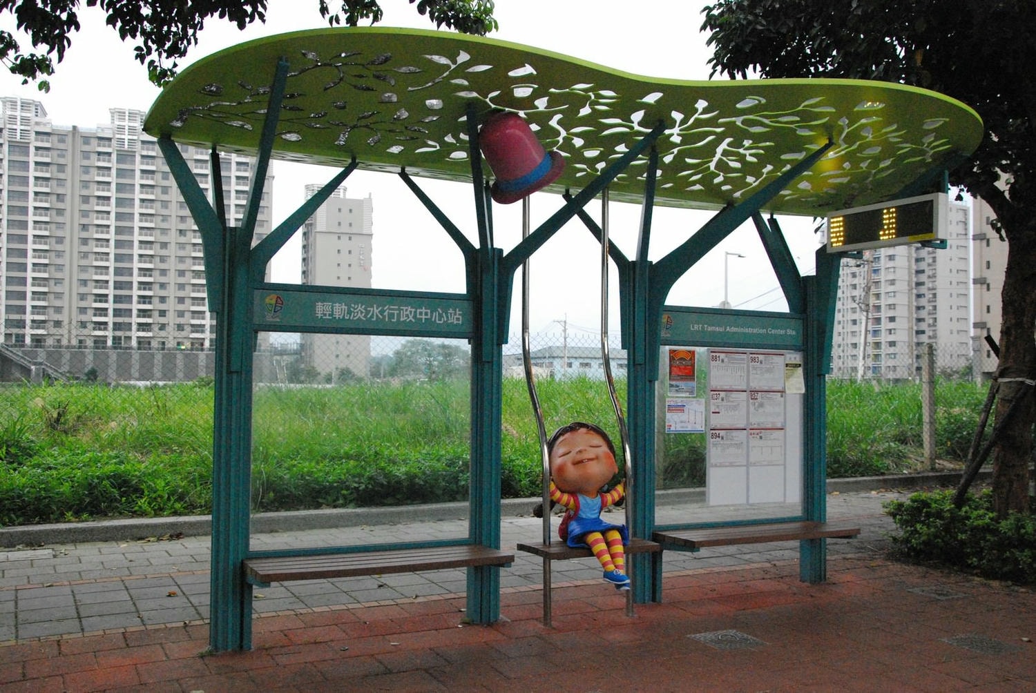 幾米公車站(輕軌淡水行政中心站),從電扶梯出口下來後直走,過馬路後就會看見。