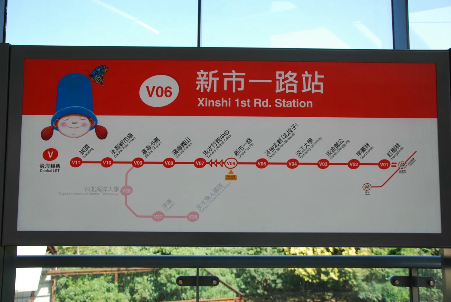| 綠山線 | 紅樹林(V01)| 竿蓁林(V02)| 淡金鄧公(V03)| 淡江大學(V04)| 淡金北新(北投子)(V05)| 新市一路(V06)| 淡水行政中心(V07)| 濱海義山(V08)| 濱海沙崙(V09)| 淡海新市鎮(V10)| 崁頂(V11) |