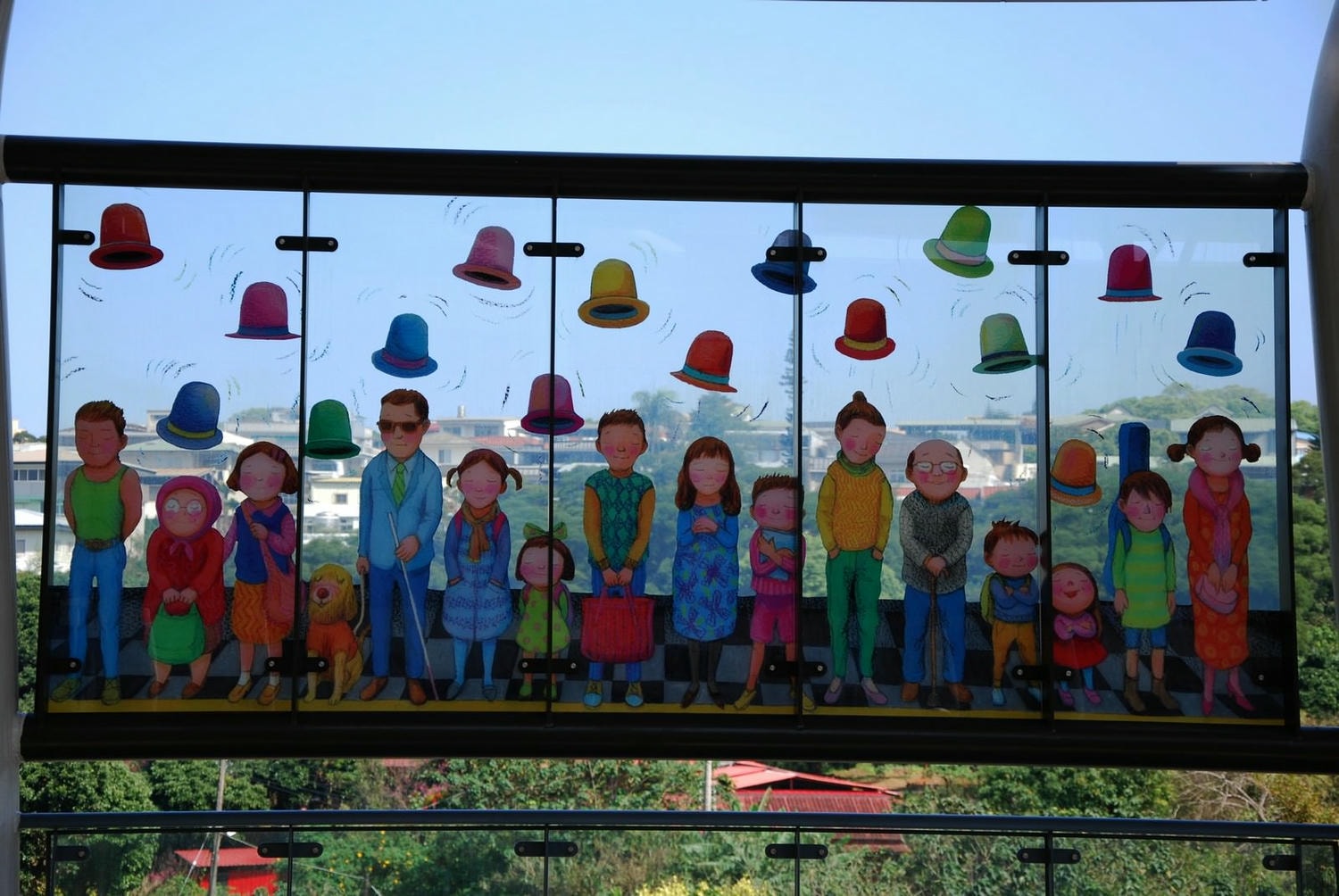 月台玻璃牆上也有一幅幾米繪畫,正面是在外側。
