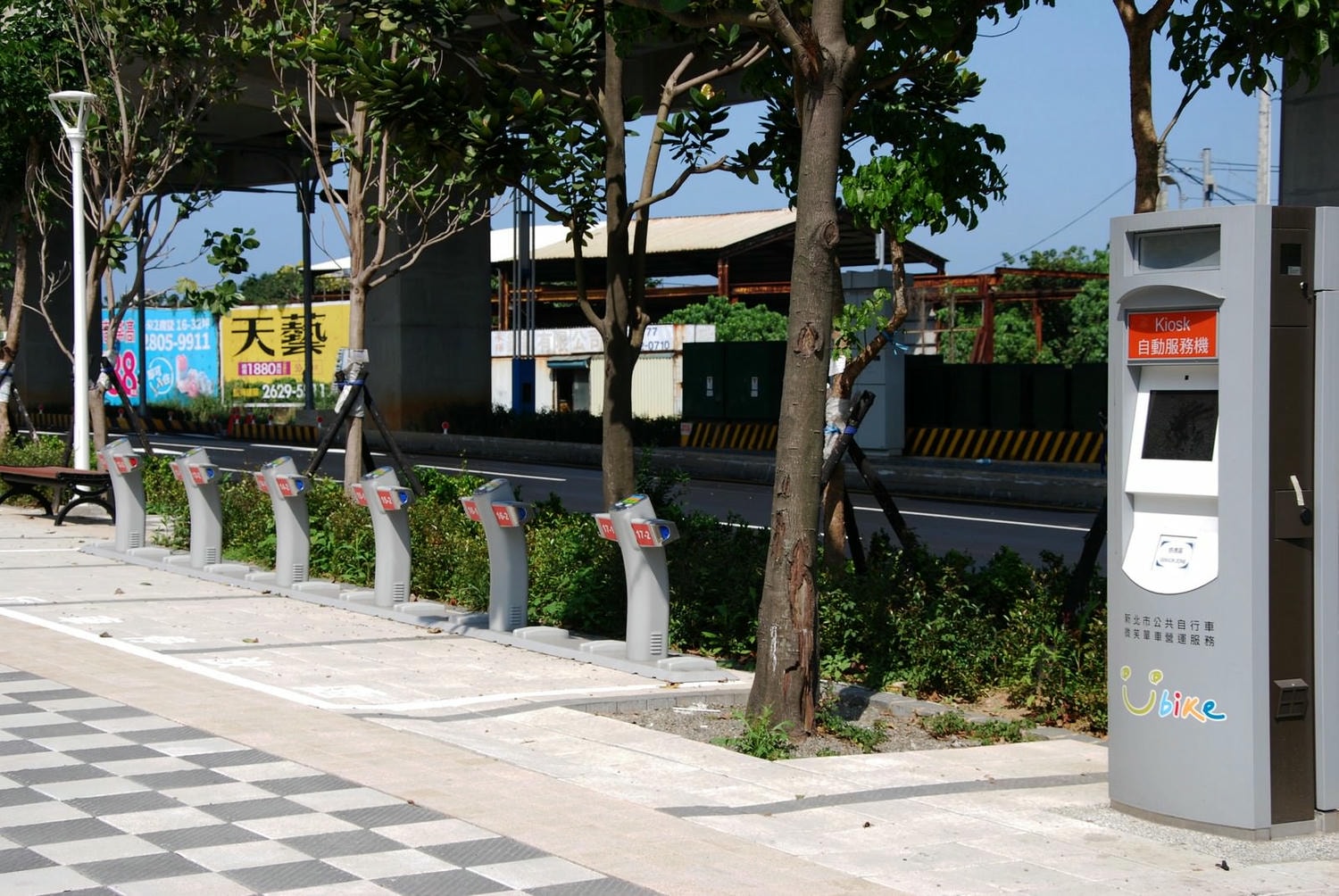 電扶梯出入口處就有 YouBike 可以租借,介紹:YouBike 微笑單車。
