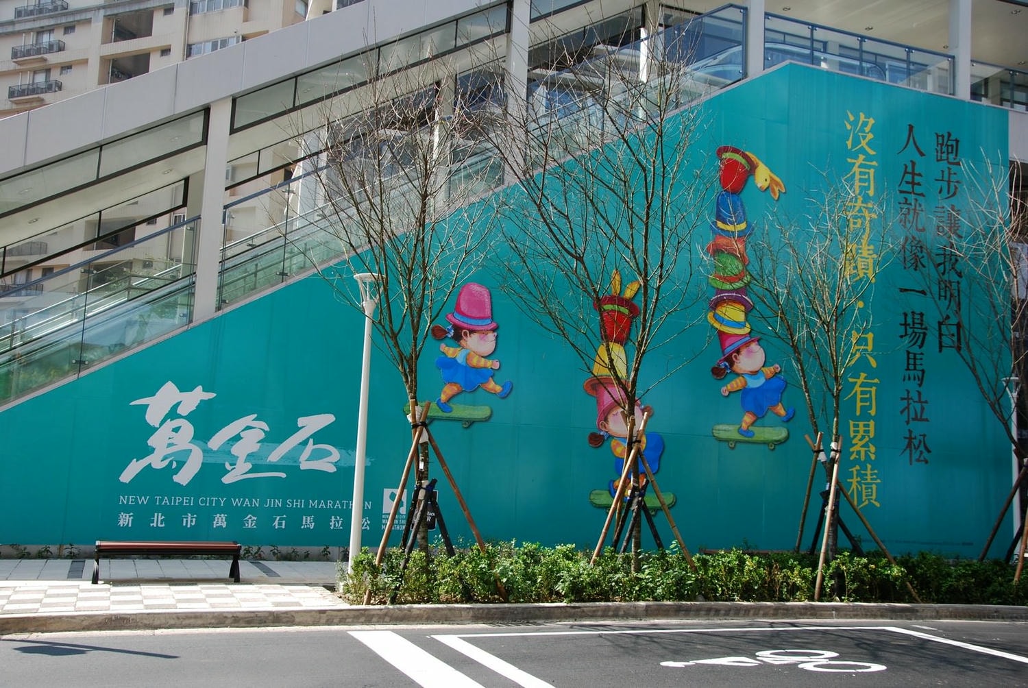 目前輕軌車站的廣告都走幾米繪畫風格。