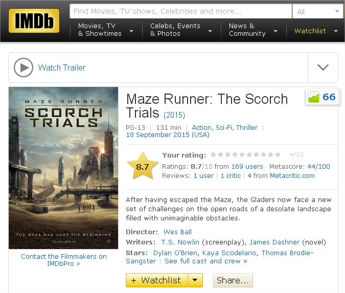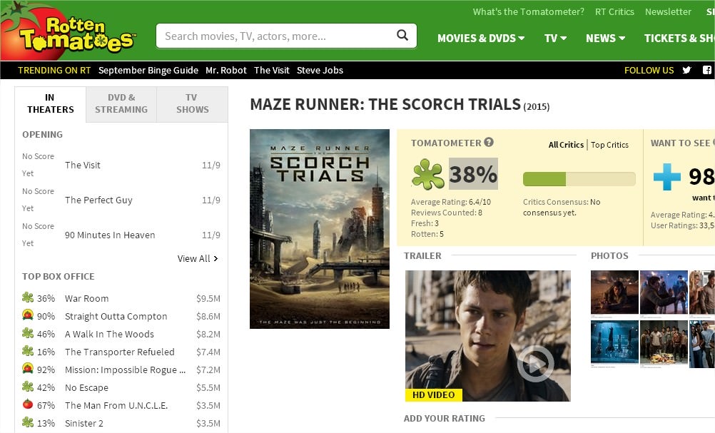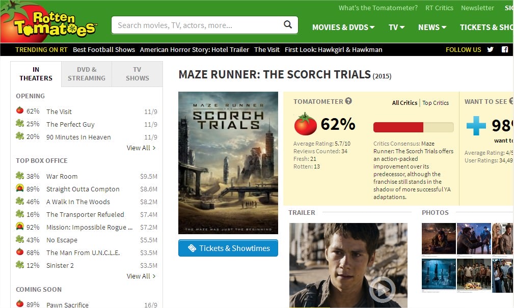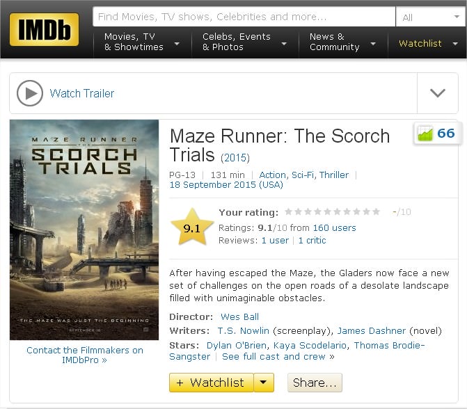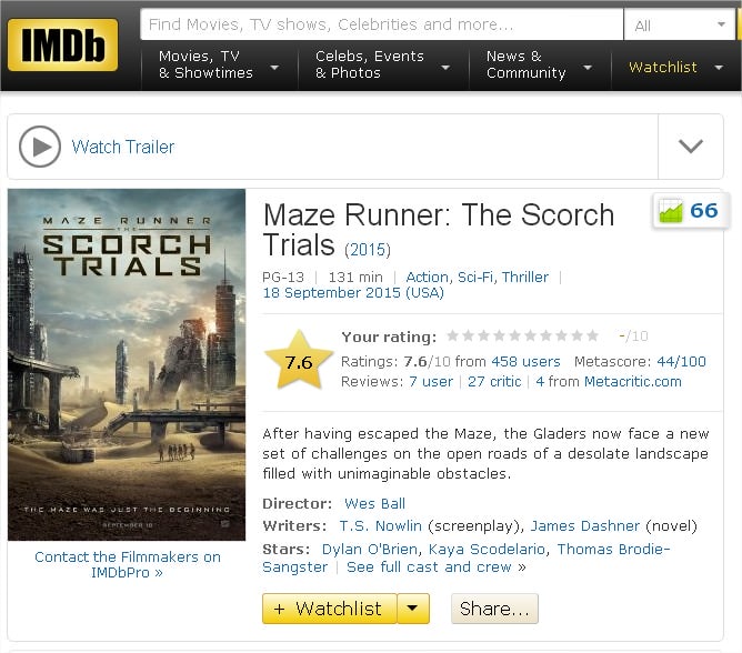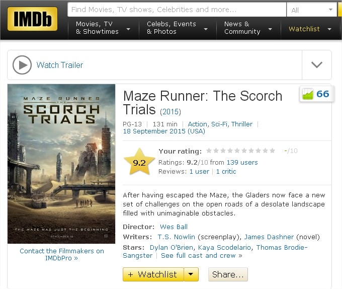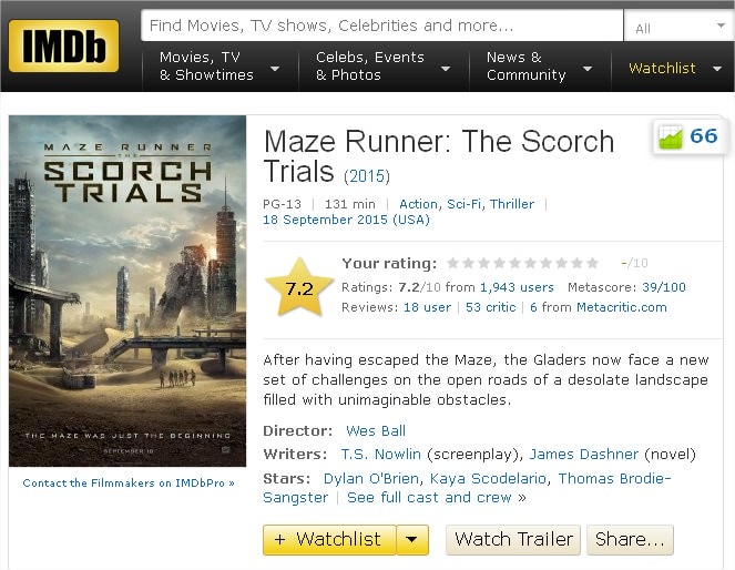 - 移動迷宮:焦土試煉(Maze Runner: The Scorch Trials)2015年9月18日