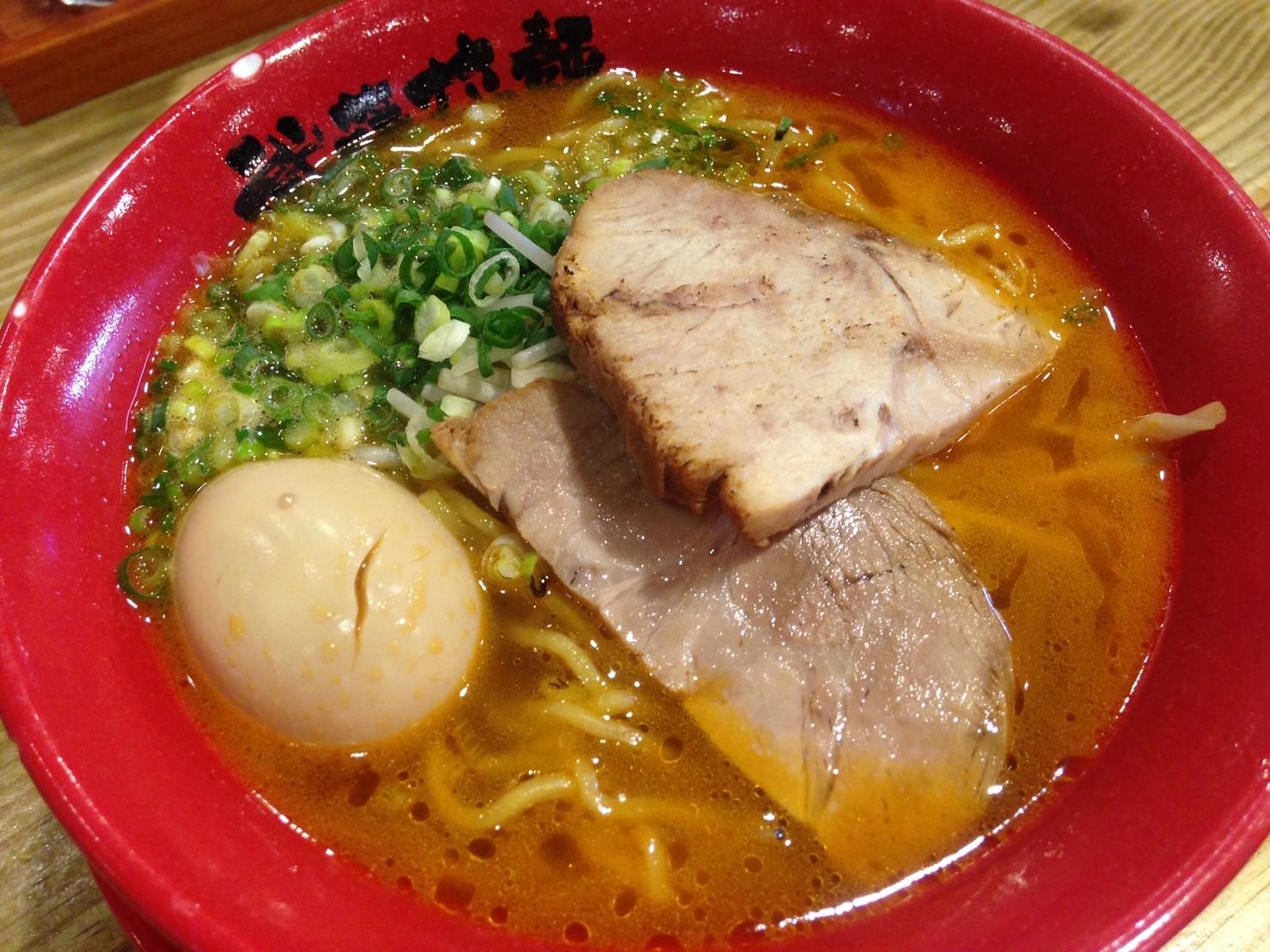 叉燒真的很大一片,厚而紮實,不軟嫩。粗麵條個人沒那麼喜歡。溏心蛋是整顆的。還加了大量蔥花,雖然吃的時候沒有太大的驚艷感,或印象較為強烈的食材、口感,但整體 CP 值頗高,且比起偏台式的日式拉麵來說,這類較為正宗的日式拉麵我在吃過之後都還會想再度造訪。