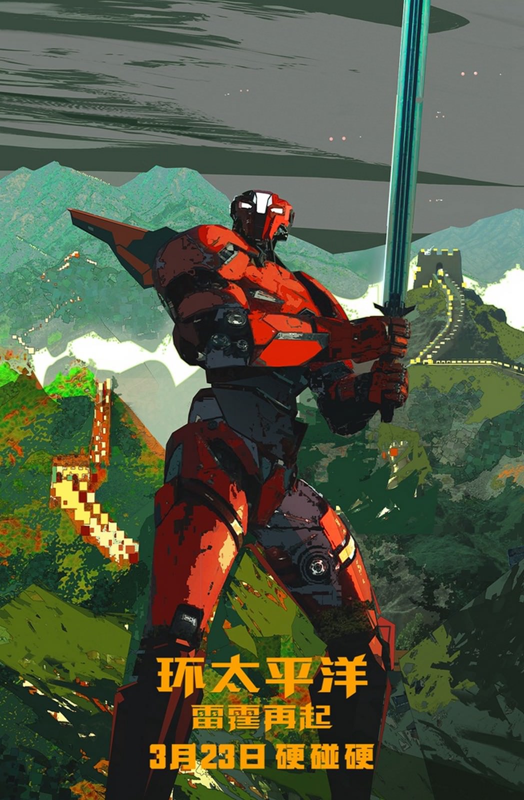 約翰波耶加飾演叛逆青年傑克潘塔考斯特,他曾經是一名極具潛力的機甲獵人駕駛員,他傳奇性的父親為了讓人類贏得勝利,在一場和怪獸之間進行的激烈戰鬥中不幸壯烈犧牲,傑克也因此放棄他的訓練,被捲入充滿犯罪份子的地下世界。但是當一支數量更多、更殘暴、更具毀滅性的怪獸軍團入侵,開始攻擊全世界的各大城市,並且試圖逼迫全人類向牠們臣服之際,與他關係疏離的姐姐森真子(菊地凜子 飾演)正在率領一支新世代的機甲獵人駕駛員準備迎戰,他們全都是在戰爭陰影底下長大的青年,她給了傑克最後一次機會,讓他得以延續他父親的遺志。