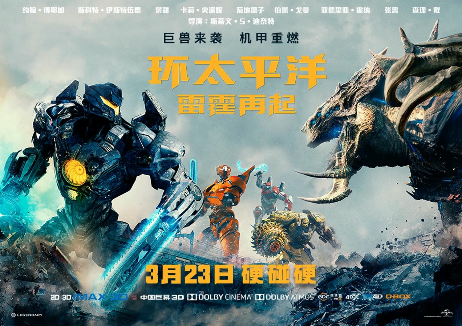 承接2013年由吉勒摩戴托羅執導的《環太平洋》續集,導演筒轉交由史蒂芬德奈特執導。卡司有《玩命關頭8》史考特伊斯威特、《長城》景甜、《STAR WARS:原力覺醒》約翰波耶加、菊地凜子。