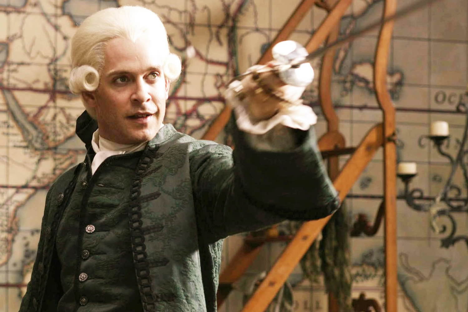 傑克達文波特/Jack Davenport 飾演 倪靈頓/Norrington(圖左男性),首集的倪准將。