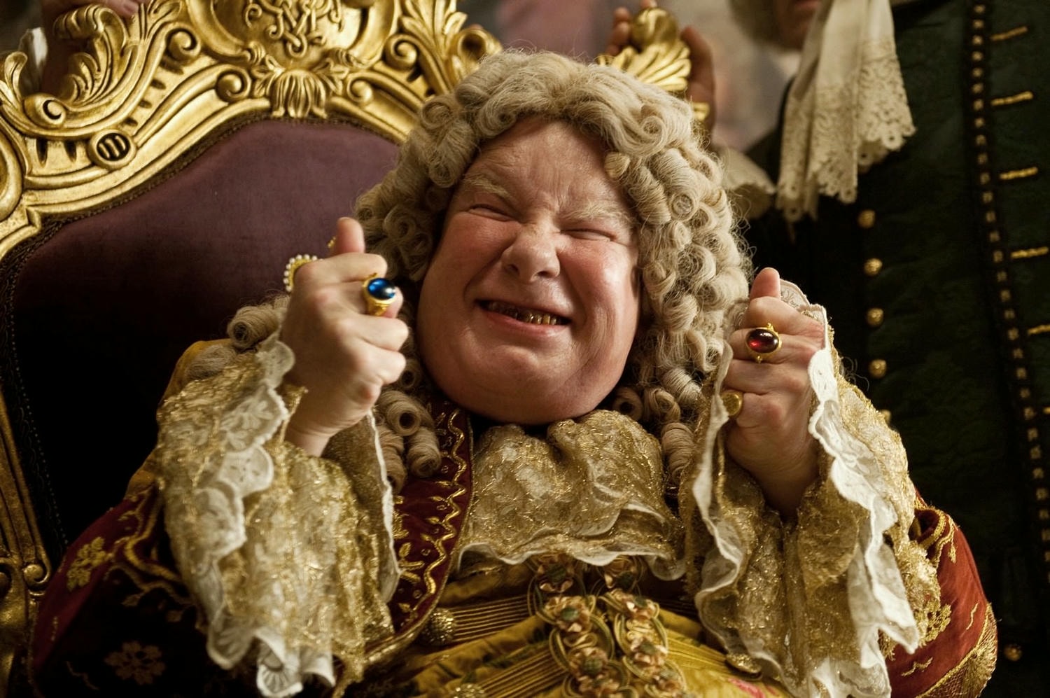 李查葛瑞夫斯/Richard Griffiths 飾演 喬治王/King George II,喬治奧古斯都布倫瑞克呂尼堡公爵,神聖羅馬帝國財務大臣及選帝侯,大不列顛及愛爾蘭國王。(圖左)