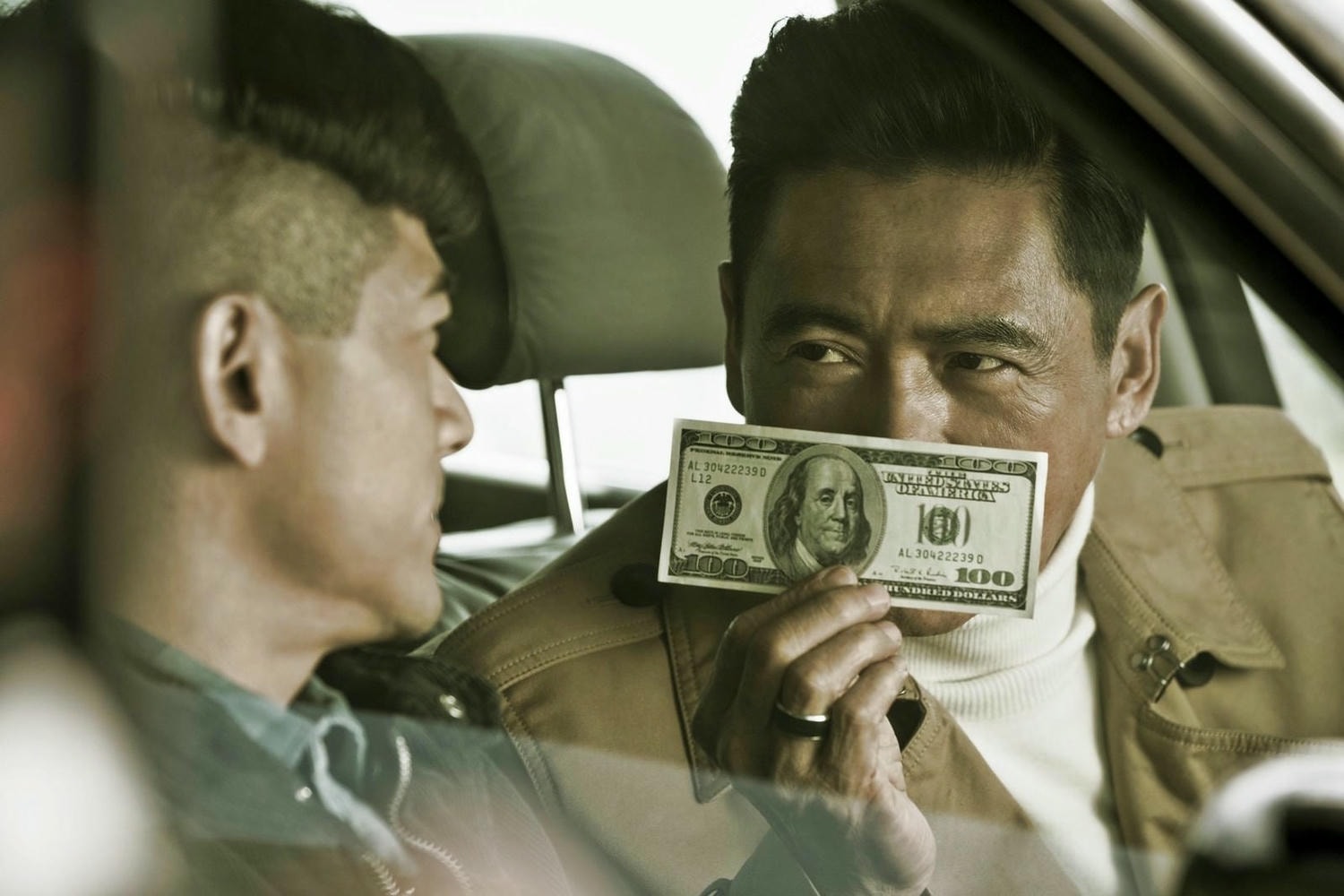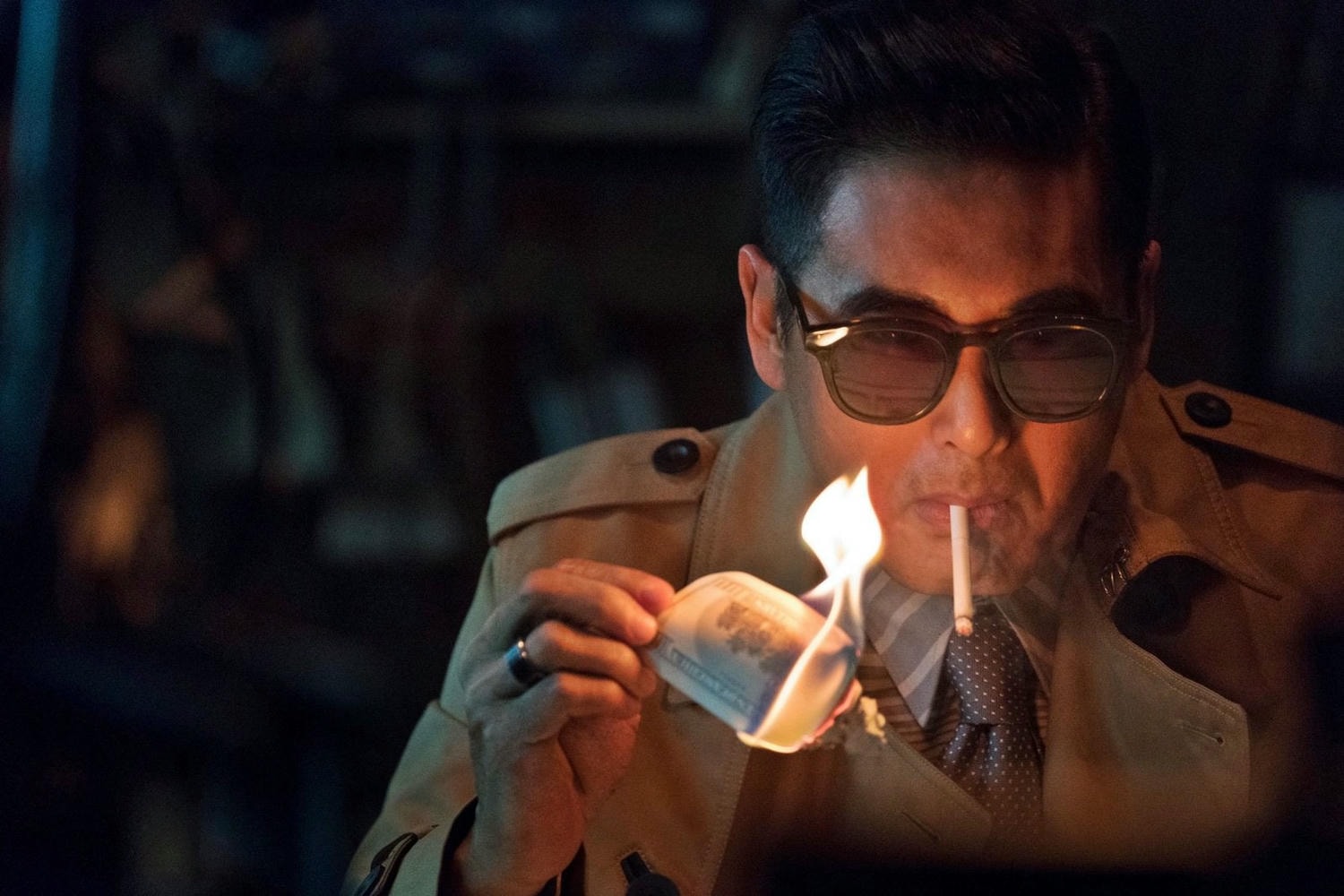 《英雄本色》另一個經典畫面,發哥拿美金點菸,在上映前曾被拿來宣傳,不過在正片中沒這段。