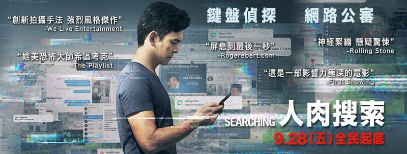 | 電影名稱 | Searching(美國, 2018) / 人肉搜索(台灣) / 人肉搜尋(香港) / 网络谜踪(網路) | |