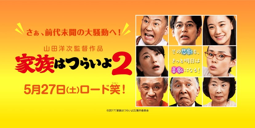 | 電影名稱 | 家族はつらいよ2(日本, 2017年) / 家族真命苦2(台灣) / 麻煩家族2(香港) / What a Wonderful Family! II(英文) / 家族之苦2(網路) | |