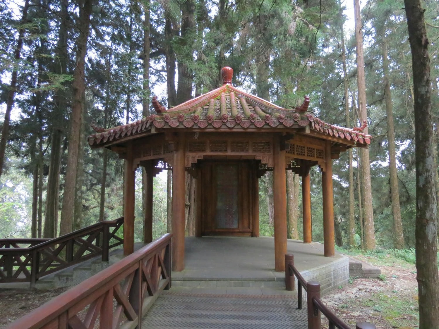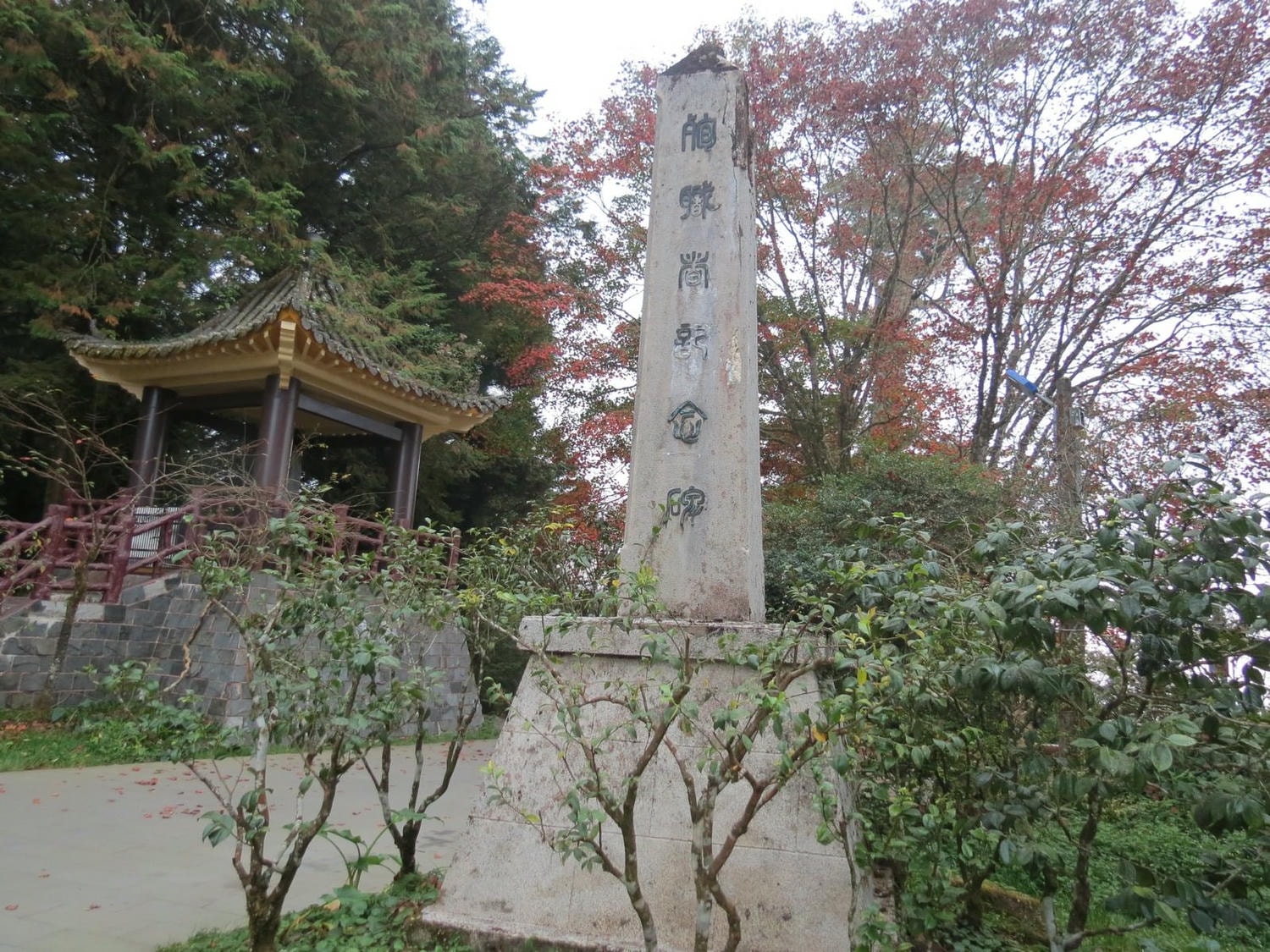 千歲檜旁的博愛亭,刻有何志浩將軍撰寫之「國父頌」詩文。