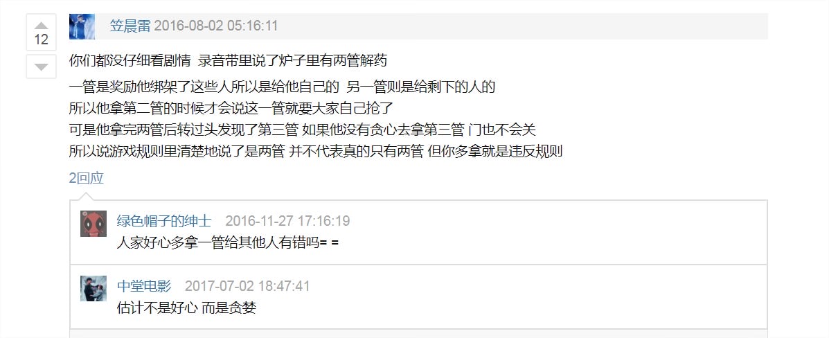 看完電影後上網看看別人討論這部電影時發現,豆瓣問題(連結)中有網友說歐比是因為貪婪拿了第三管才被火燒,怎麼我當初沒看出來?後來又重看了這段。