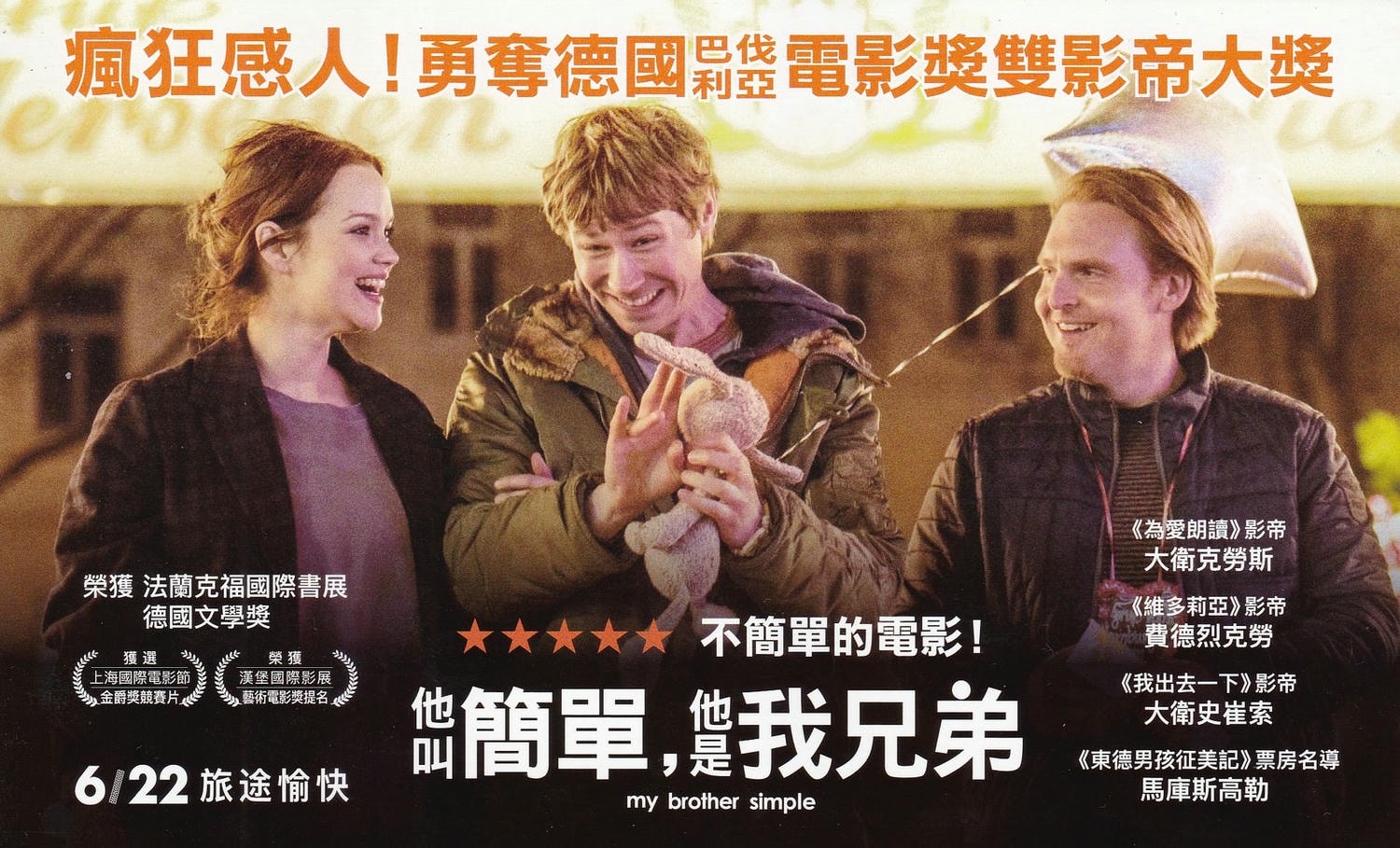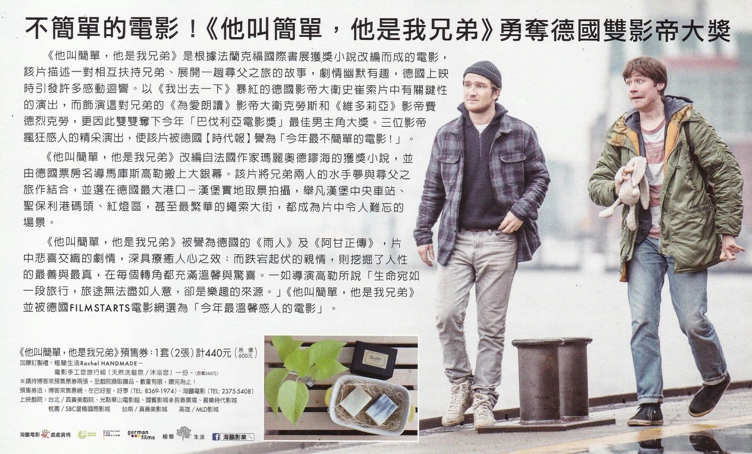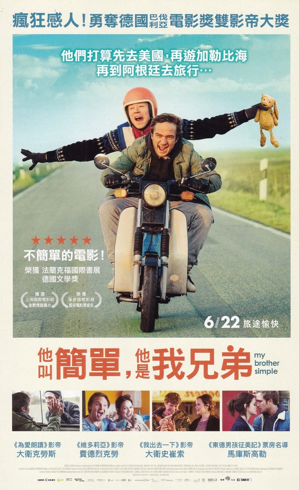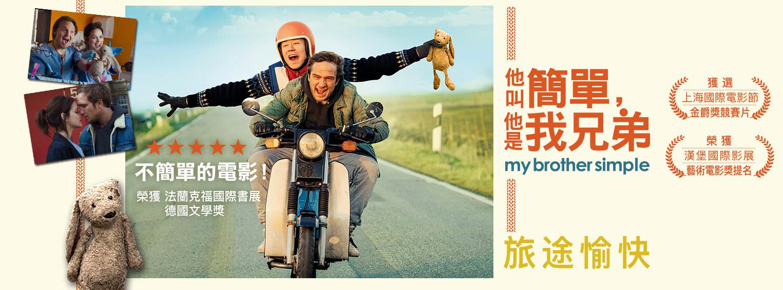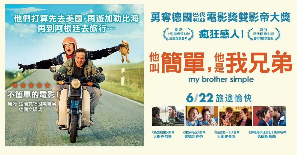 《他叫簡單,他是我兄弟》是根據法蘭克福國際書展獲獎小說改編而成的電影,該片描述一對相互扶持兄弟、展開一趟尋父之旅的故事,劇情幽默有趣,德國上映時引發許多感動迴響。