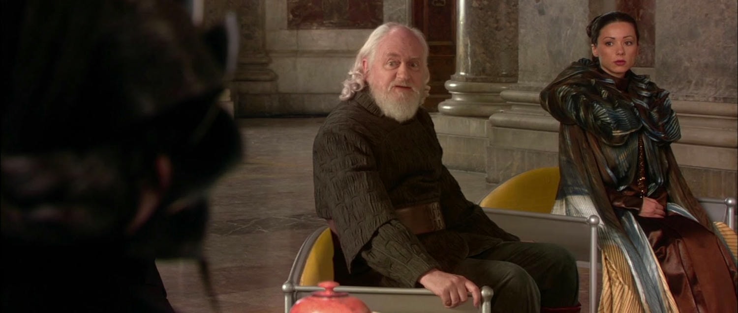 伊恩麥卡達米/Ian McDiarmid 飾演 白卜庭/Supreme Chancellor Palpatine,這集明顯蒼老許多。