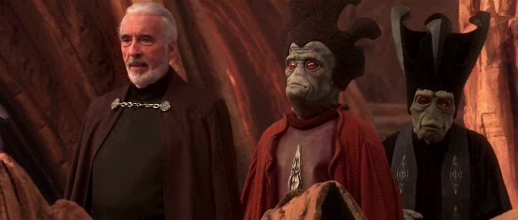 賽拉斯卡森/Silas Carson 飾演 奇-亞迪-蒙地/Ki-Adi-Mundi(圖左頭很長那位絕地武士),他同時也是演紐特·甘雷。