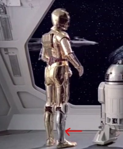 C-3PO 拿著腳要 R2-D2 幫它組裝這幕也能看到銀腳。