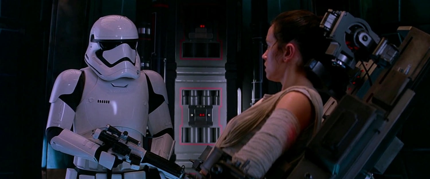 芮的部份也會讓我想起《七龍珠》,悟空為了要變成超級賽亞人辛苦的要命,結果悟天說變就變。安納金當初練習原力也是辛苦的要命,結果芮只看過凱羅·忍施展一次就能學會心靈控制,還能自由施展格空取物、揮舞光劍。