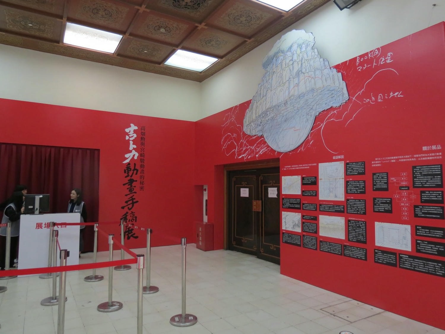 進來後就會看到吉卜力動畫手稿展的佈置,基本上展期人潮應該都很多,也不難找。