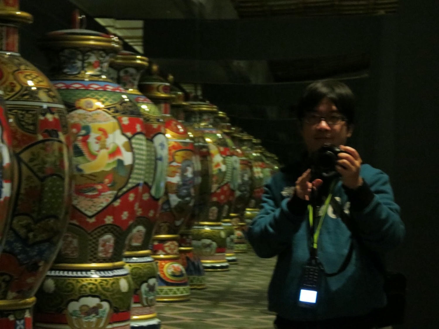 利用兩面鏡子的多重反射,呈現出《神隱少女》中,從電梯走出來後到湯婆婆房間間走道整排的伊萬里燒(伊万里焼)瓷器的場景。