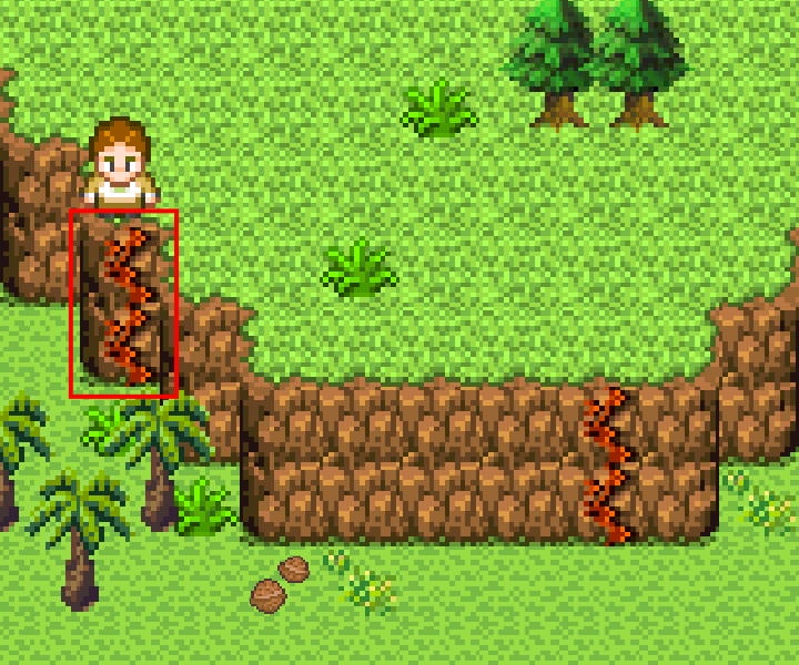 本島B區最上方有峭壁,面對峭壁點「持有物」選「繩子」,就會在峭壁上架繩,一格需要一條繩子。若沒想到繩子能有這用途,還蠻容易卡關的。