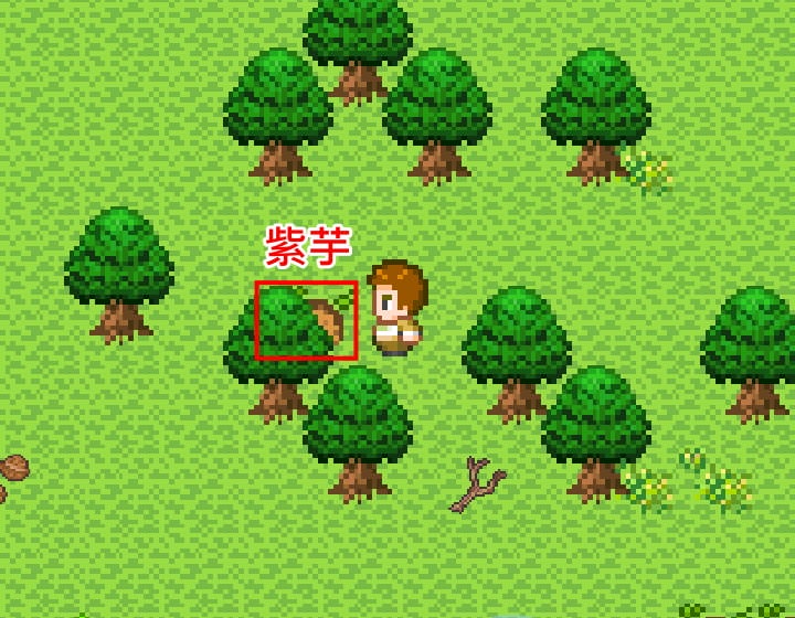 此外這個位置的草叢能取得「紫芋」,每4分鐘能取得一次,至少要取得5個才可以用「研缽」加工製成「紫芋泥」。