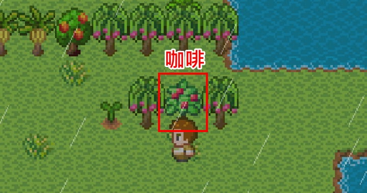所有的水果都需要收集到,其中最稀有的是「咖啡樹」,能取得「咖啡豆」,需要5顆,故至少要種2棵咖啡樹才夠,可用「研缽」加工成「咖啡粉」。
