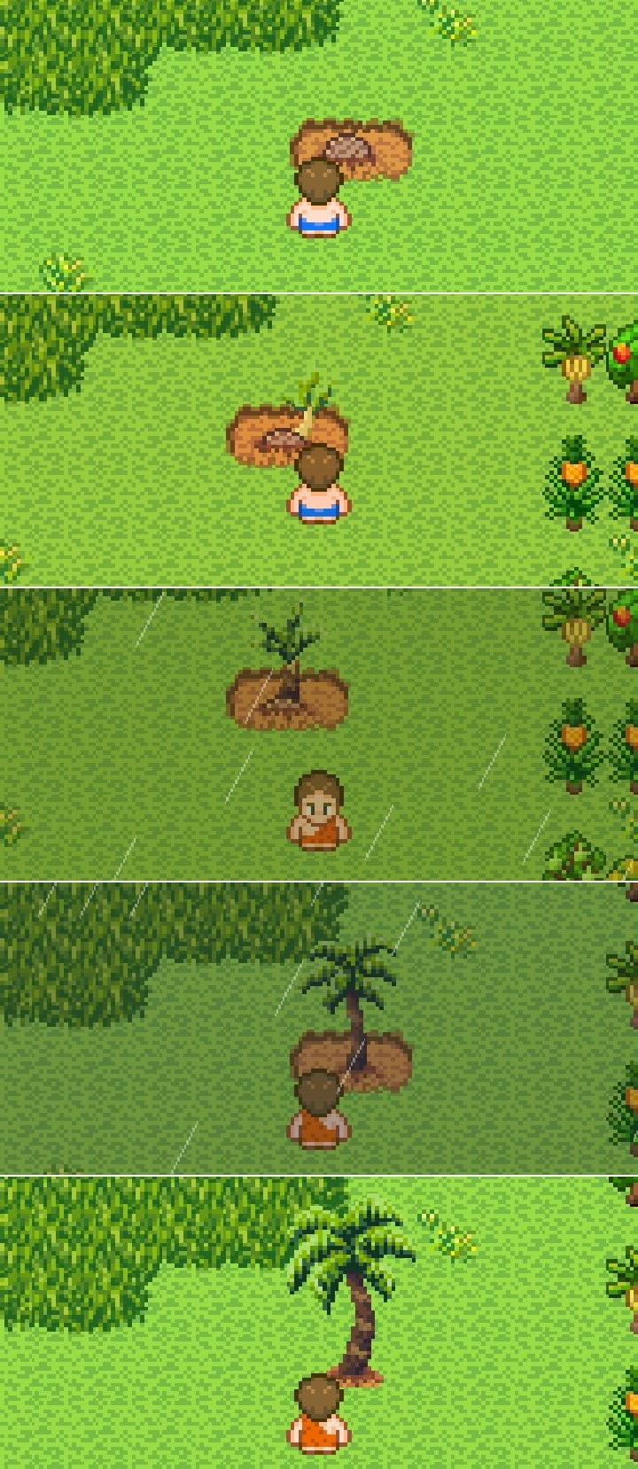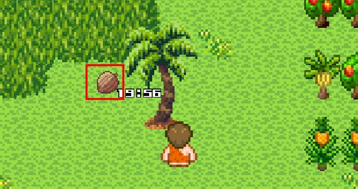 對著椰子樹點動作,會推椰子樹並掉下「椰子」,但通常這時已經不缺椰子了,是另有用途。