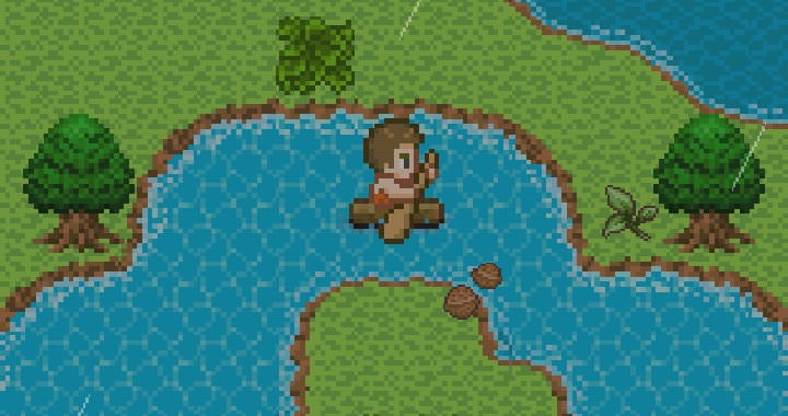 - 成功把椰子弄下來後,該島地形又是個考驗,有條小溪把島嶼分成左右兩側…