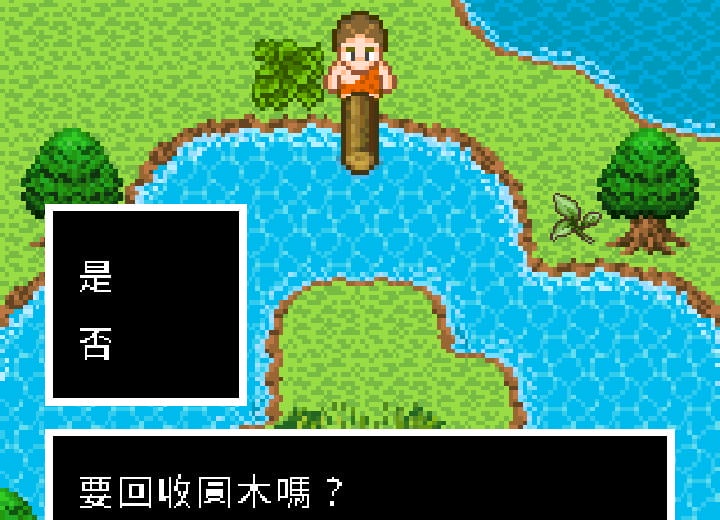 面對圓木點動作鍵則可收回,不然的話離開該地圖、離開遊戲,圓木也會自動回收到身上。若是在同個地圖上會再次使用,就需要回收。