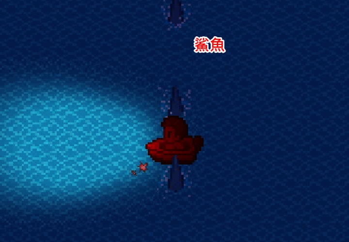若是在晚上開小船進入「城市島」風浪太大的範圍內,會出現鯊魚,而且是連綿不絕靠近的。(我是70級後才發現,不確定有沒有限定等級)