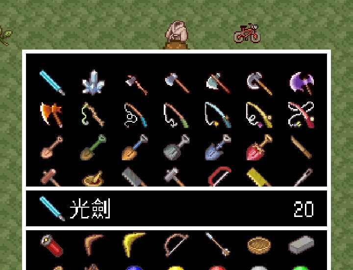 附註1:分解後可得到:線、螺絲、鋁箔、釘子、鋁管、鐵棒、金屬線、金屬板、柚木材、塑膠垃圾、堅固的螺絲、堅固的金屬線,此外也能釣到光劍。