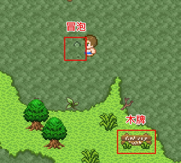木牌左上方沼澤中有格會冒泡,這在遊戲中是重要提示,用釣竿釣(堅果即可)可以釣到「鋼板」。