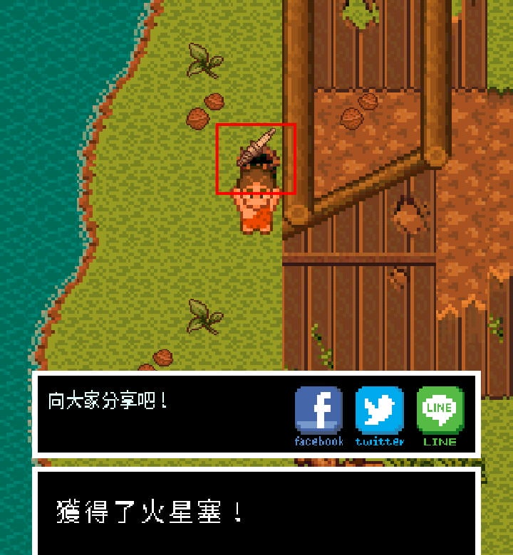 島嶼左上方有幾間殘破小木屋,最左邊那間左邊斷掉的柱子,面對它點動作鍵可以取得「火星塞」。