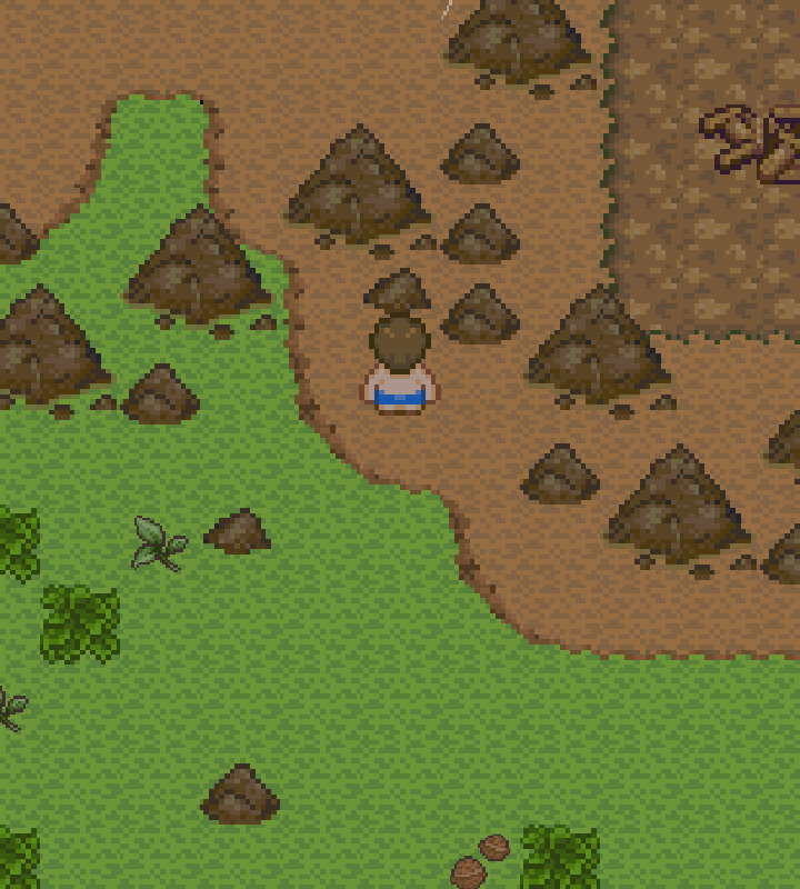 接下來這邊會容易卡關,用「木製鏟子」挖開本島B區左上方的土堆,就可以往新區域冒險。這區域雖然有「橡木」,但目前的斧頭還不好砍,先不用砍。