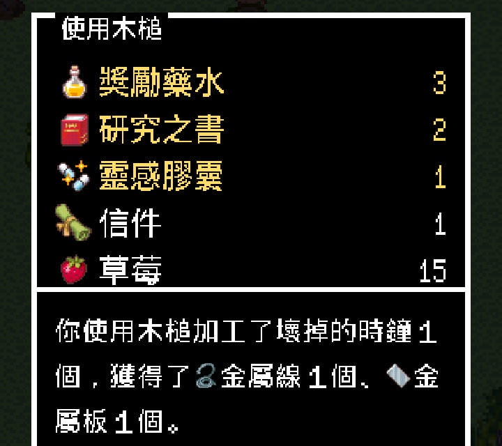 還要使用「木槌」對其分解,會得到「金屬線」跟「金屬板」,若沒看攻略或嘗試各種可能性,這個步驟很容易卡關。