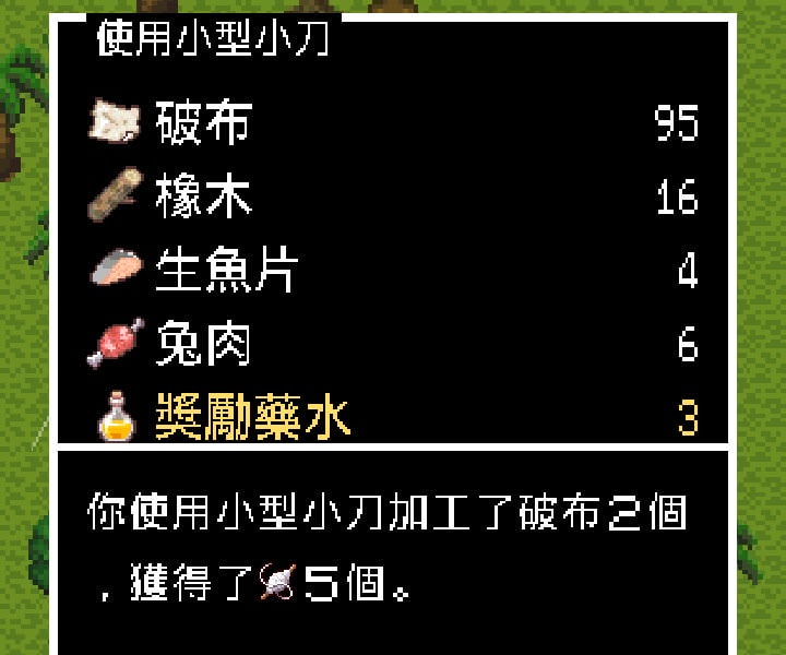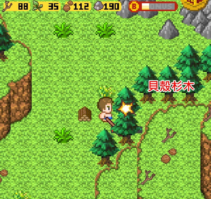 另外這遊戲在伐木、挖土堆時若需要動作到十下以上,表示該工具並不適合,有點越級打怪了,可以先去別的地方嘗試。若已經無法觸發新的「研究」,表示可能有忽略掉一些「材料加工」或「道具使用」的可能性。