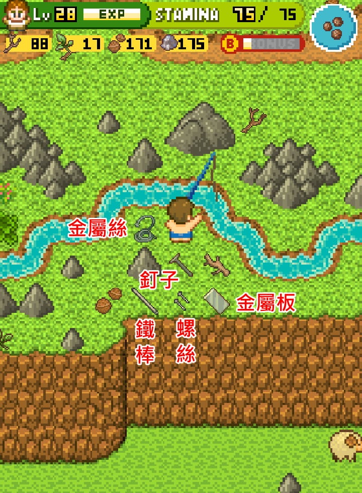 | 攻略 | 1.樹枝篇 2.椰木篇 3.貝殼杉木篇 4.柚木篇 5.金屬鎚子 6.最強工具 7.修理小船 8.隱藏劇情 | 製作電鑽 |