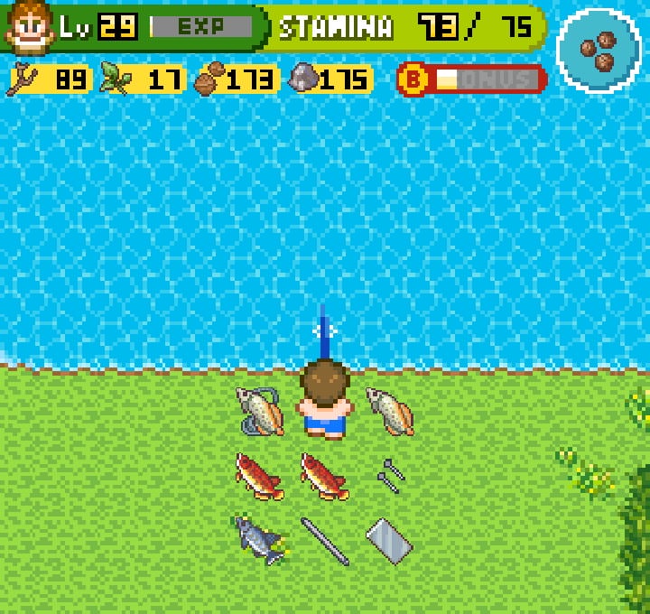 製作出溪釣竿後,用「高級釣餌」可以在溪邊釣到許多金屬零件:釘子、鐵棒、螺絲、金屬板、金屬絲,可以觸發新的研究: