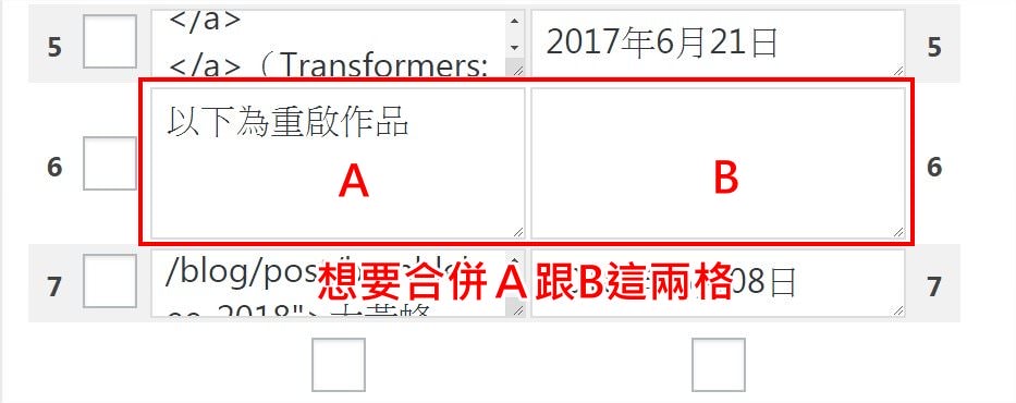 假設現在要合併 A、B 這兩格,你得