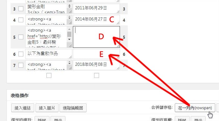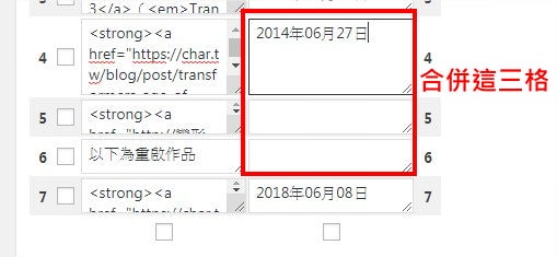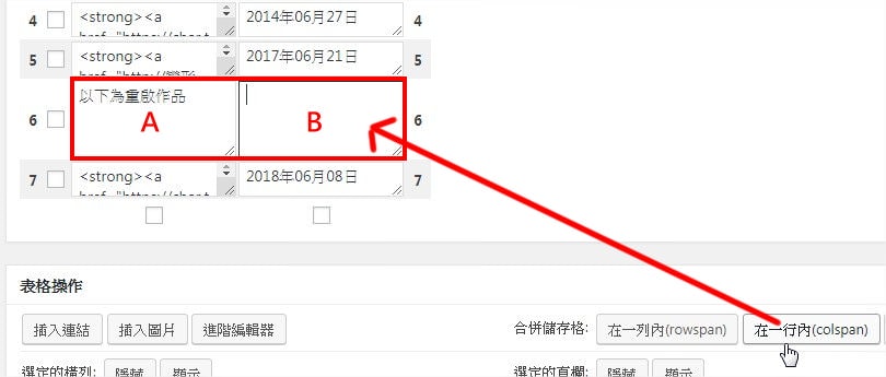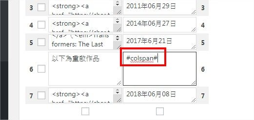 TablePress 如何合併儲存格?