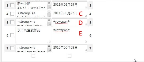 | #rowspan# | 上下合併 |