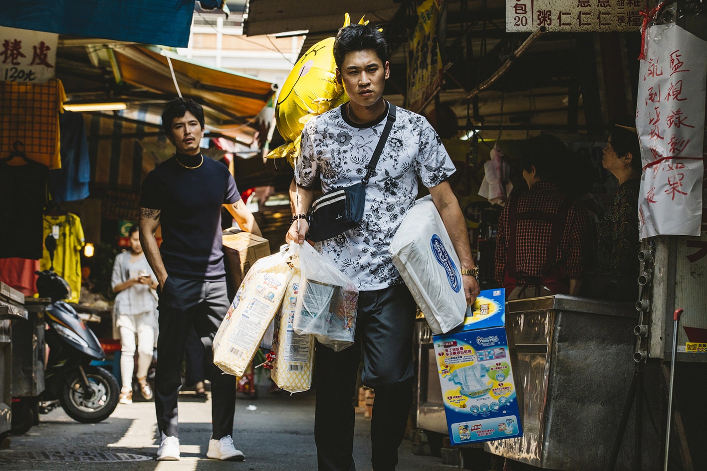 黃迪揚 飾演 文西(前方手提物品白衣男子),男主角之一,負責「導演」工作,認為這工作有其道德與尊嚴該受到尊重,不願意拍電影這事被利用。文西諧音閩南語「穩死」,劇中角色都如此稱呼他。