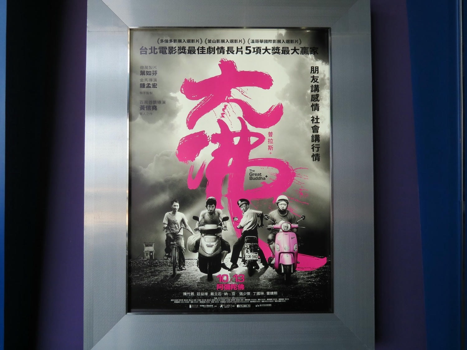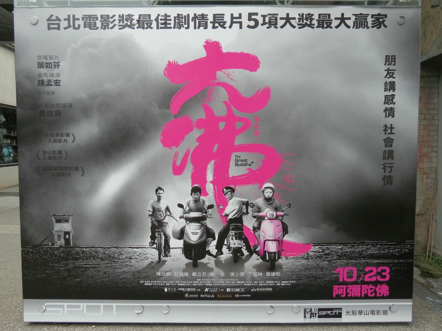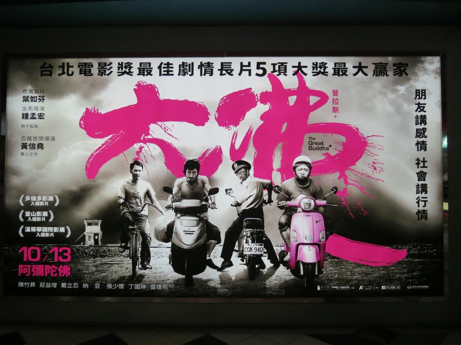 2017台北電影節橫掃五項大獎包括了最佳劇情長片與百萬首獎;台北電影節開幕片。演員戴立忍、莊益增、陳竹昇、張少懷、林美秀,描述遊走社會邊緣的中年男子偷看工廠老闆的行車記錄器,卻引發了一連串不可思議的連鎖反應,連工廠裡準備參加護國法會的「大佛」,都被迫捲入這場世間紛擾。
