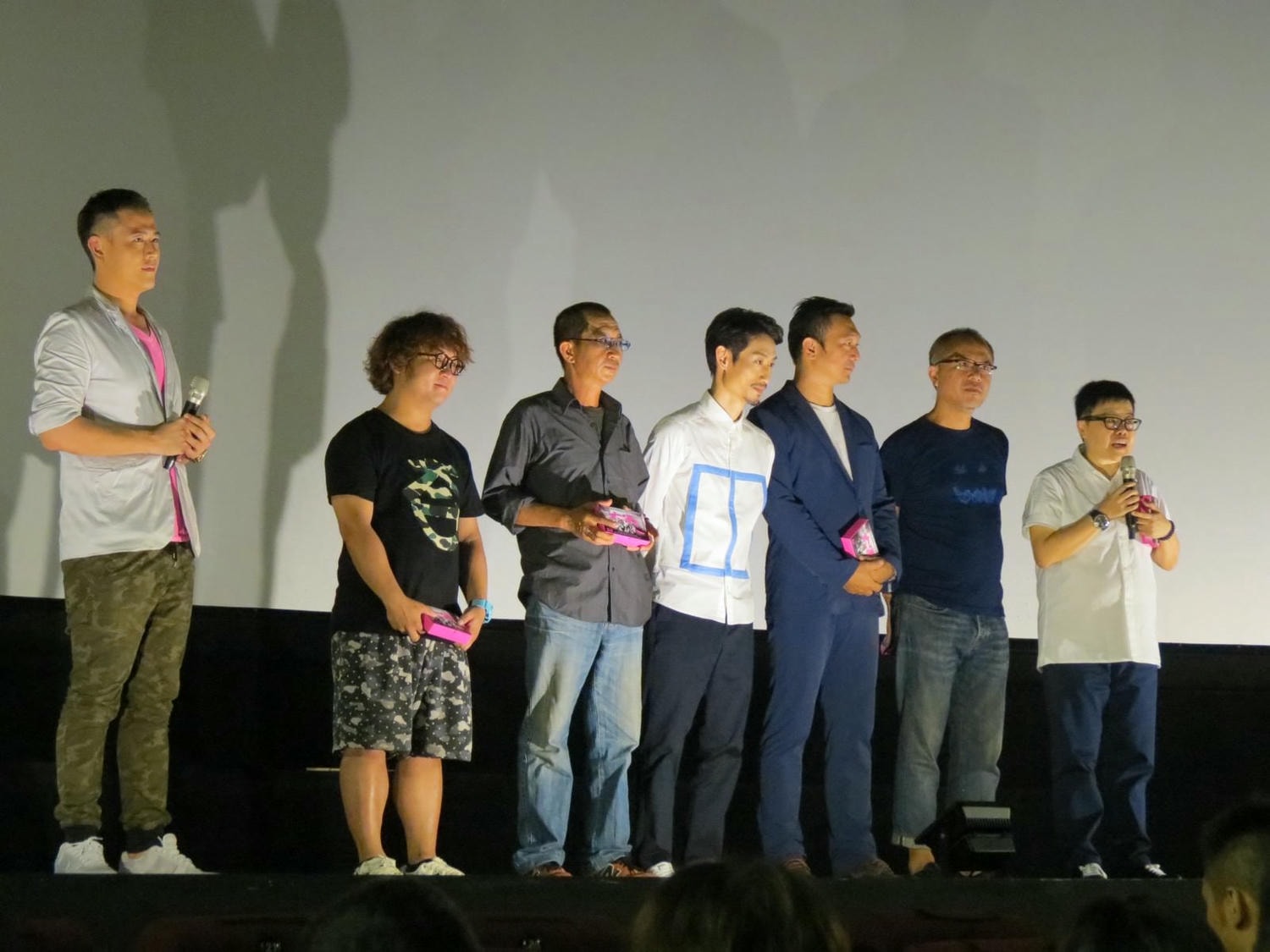 右起:監製葉如芬、監製&攝影鍾孟宏、導演黃信堯、演員陳竹昇、演員莊益增、演員納豆、主持人楊達敬。
